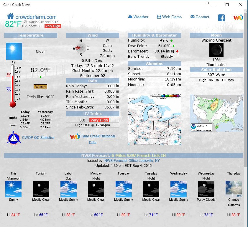 Local current weather conditions and news for Cane Creek and the French Lick, Indiana area. Web Cams and just general neighborhood fun.