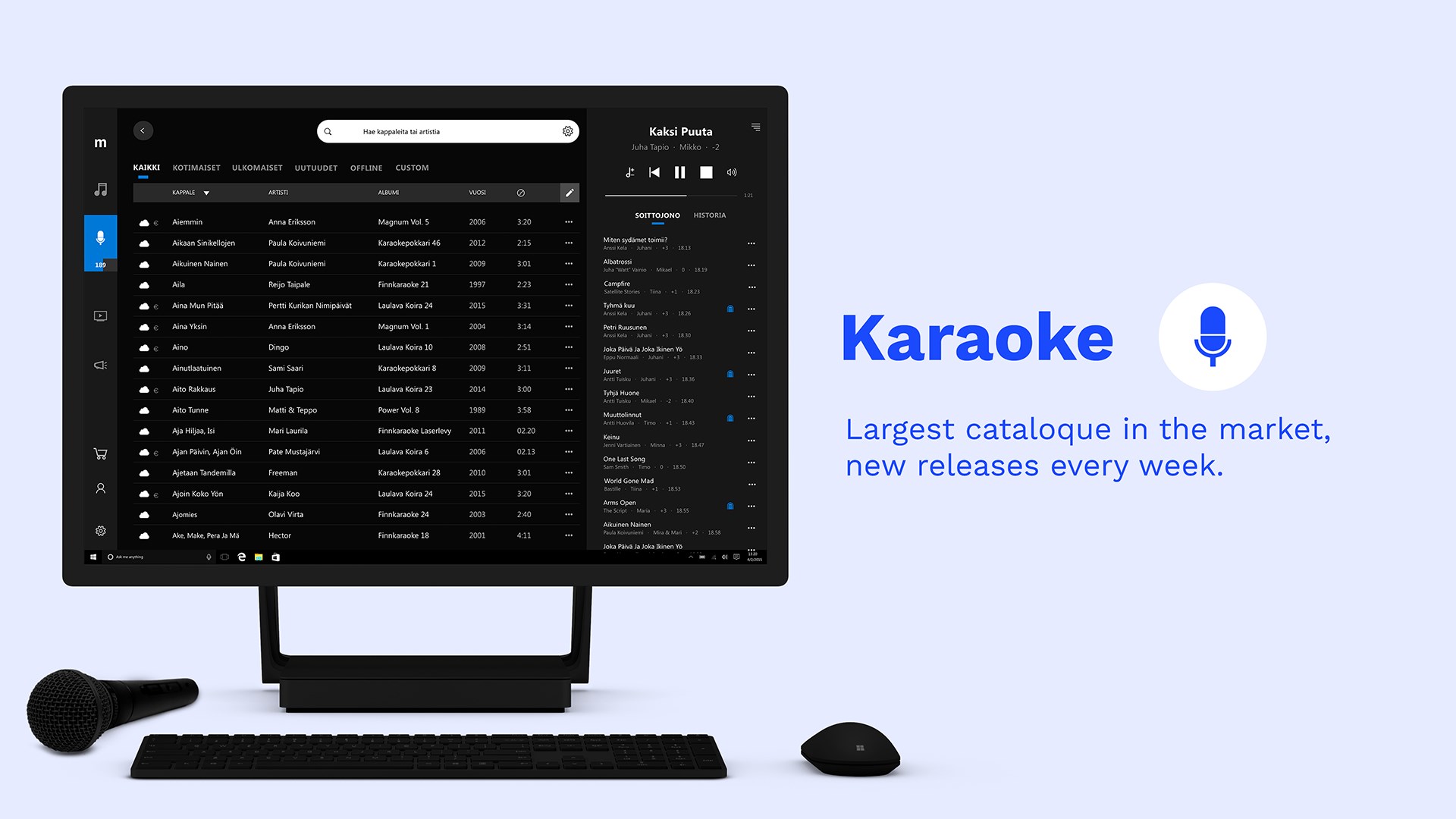 The fairest and the most popular business-certified karaoke service in Finland. Doesn't require an active internet connection! 30% larger catalogue of Finnish songs compared to the closest competitor.