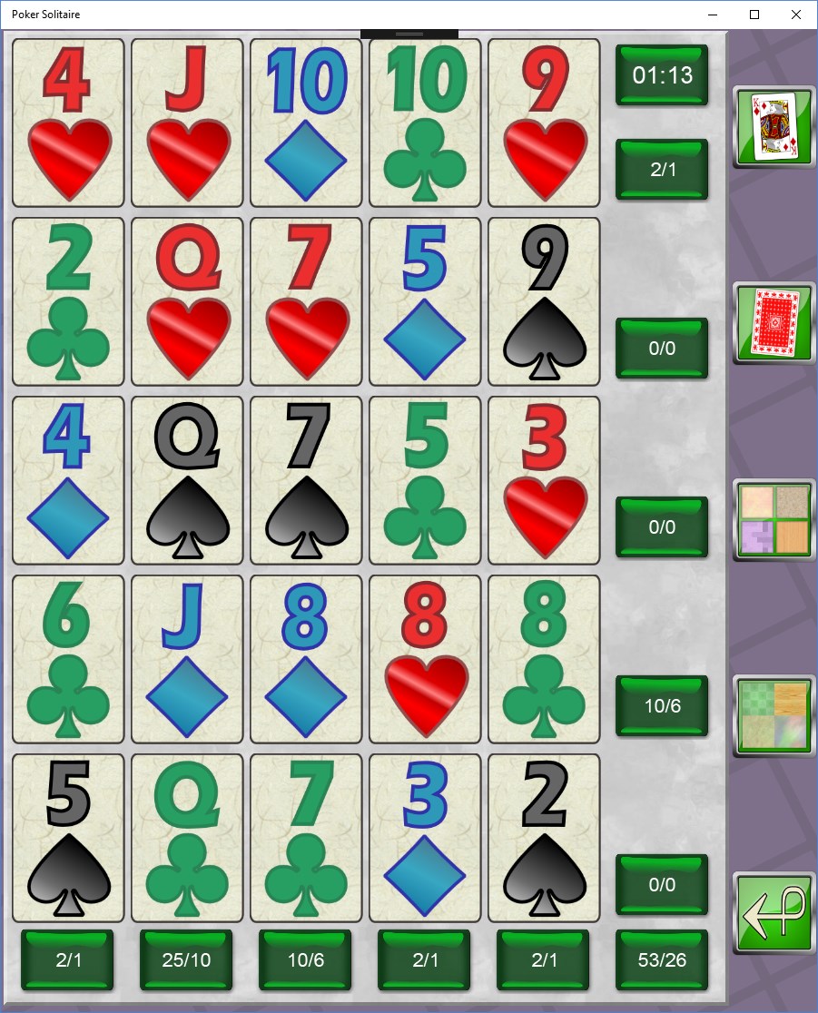 Poker Solitaire, also known as Poker Squares, is a highly addictive card solitaire played with a standard pack of 52 playing cards that combines luck with skill providing endless hours of fun and entertainment.