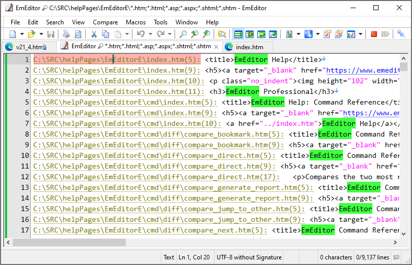 ** This is 32-bit version. If you have 64-bit version of Windows, we strongly recommend using EmEditor (64-bit):