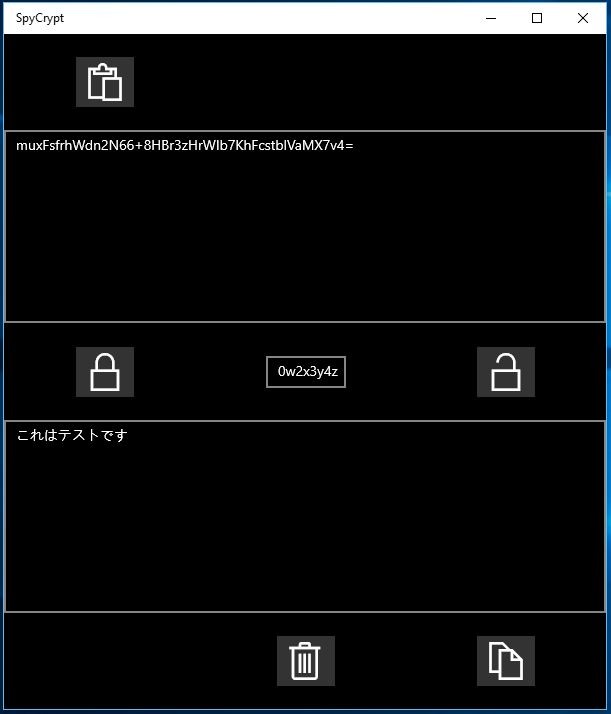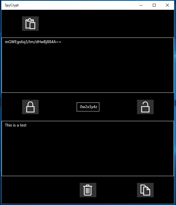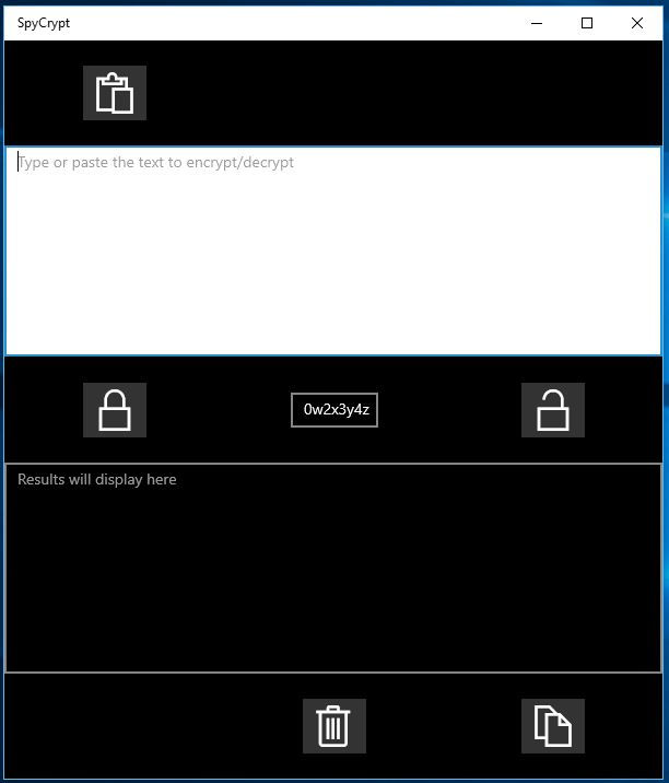 Very simple utility to encrypt and decrypt text via a symmetric key encryption algorithm. It allows users (who both have the app installed) to type or paste text and encrypt it/decrypt it, in any language. A default key (shared secret) is provided and used as part of the encryption algorithm, but it can be changed to a preferred custom value. The encryption or decryption results can be copied to the clipboard for further use.