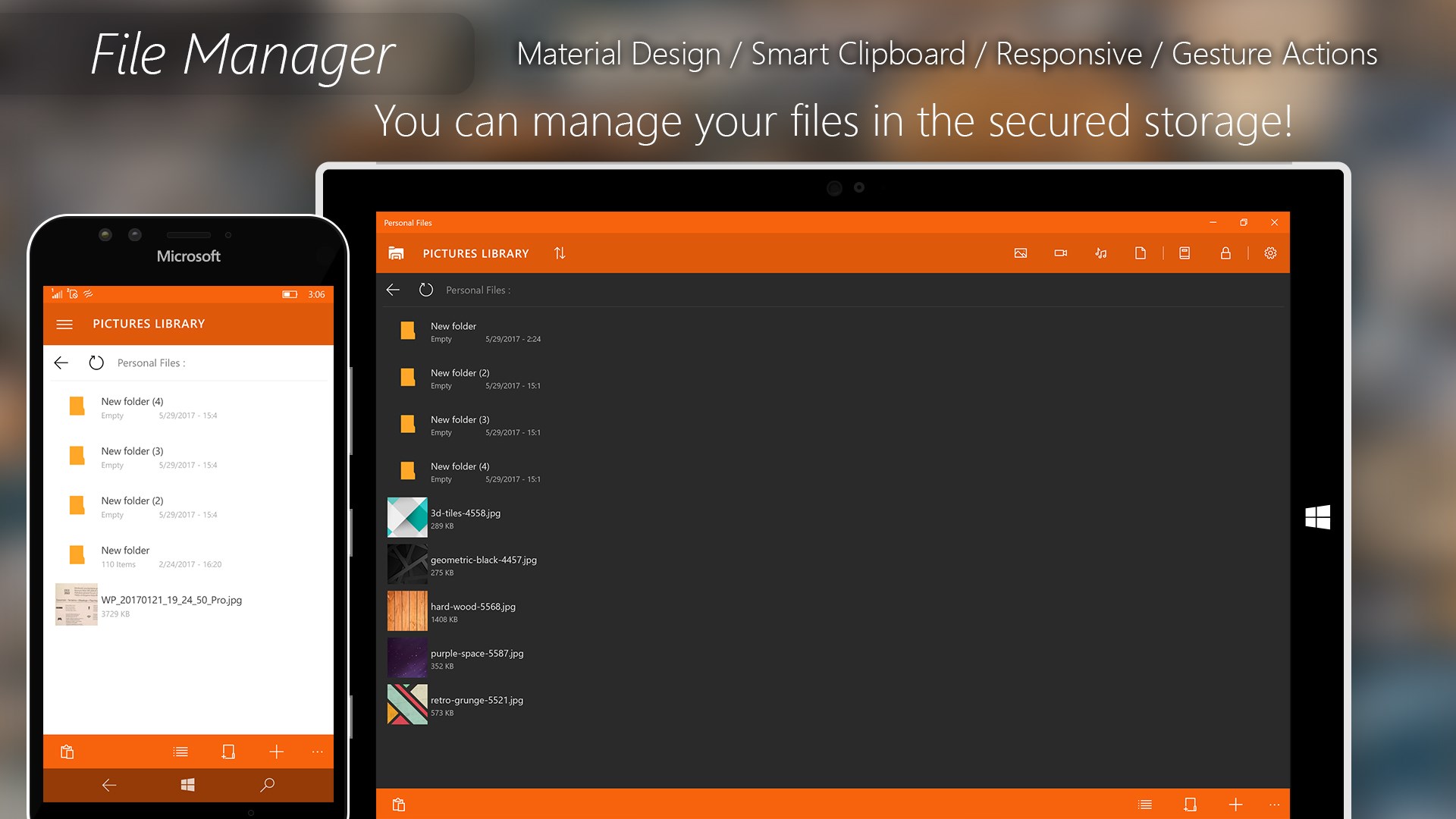 This app have the best internal file manager in the windows store.