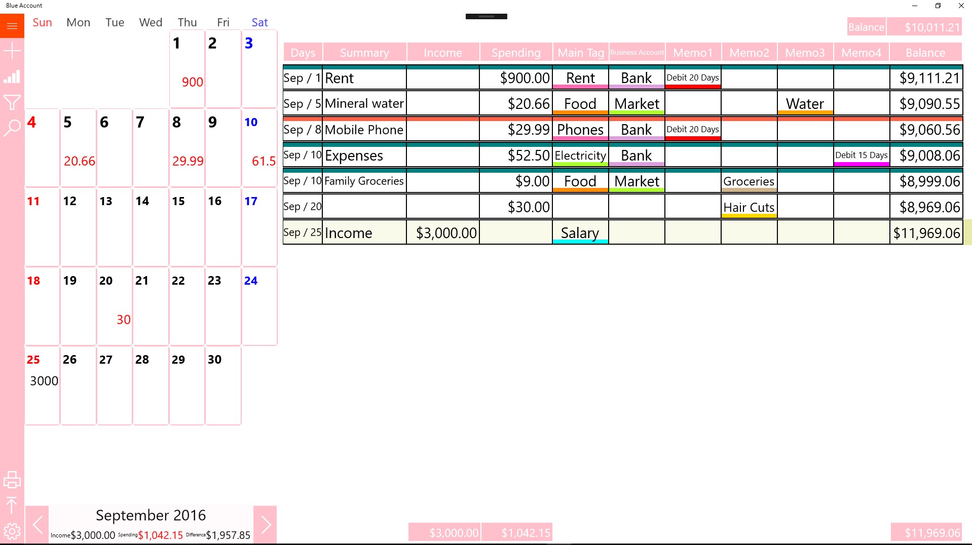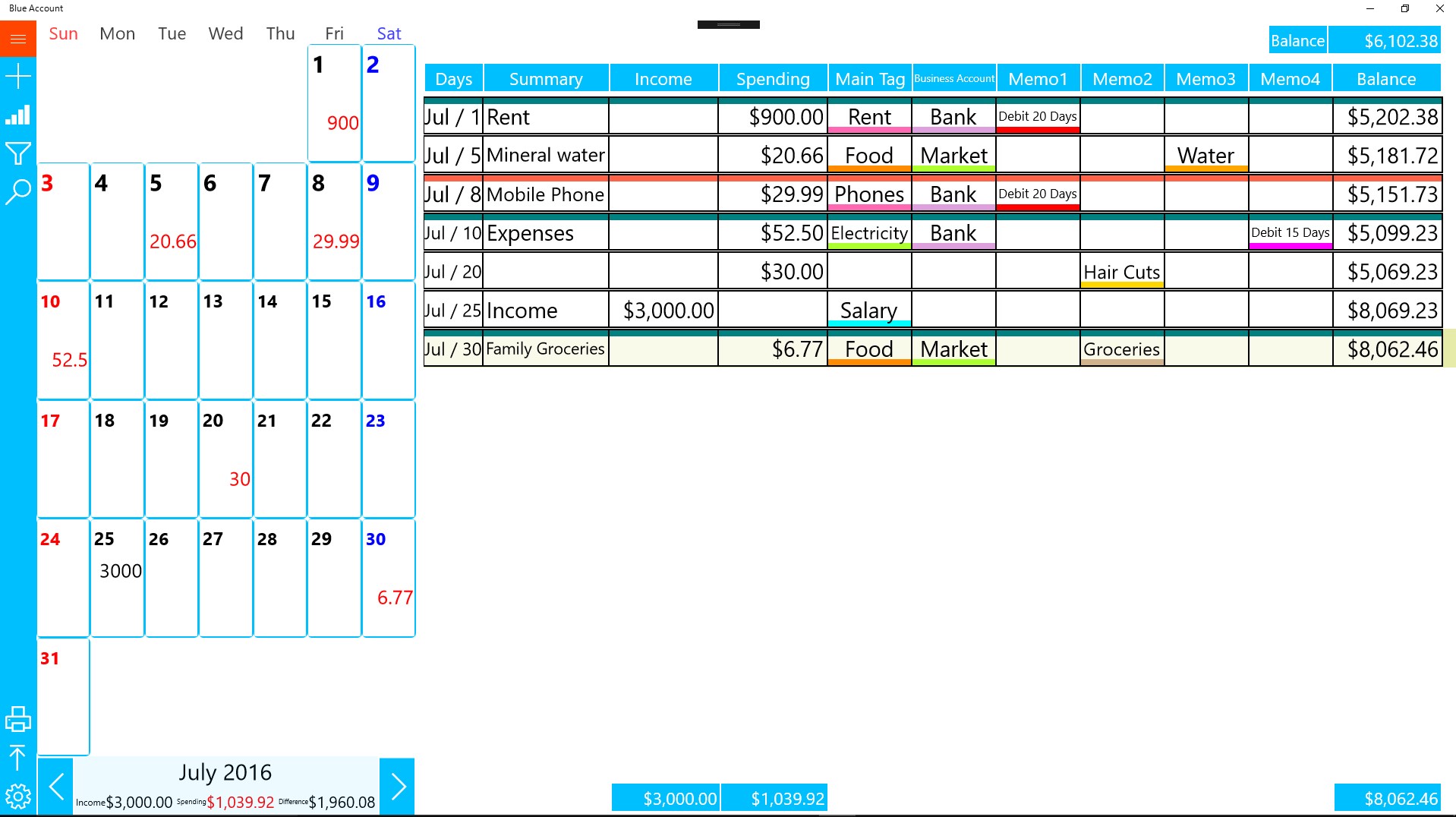 Blue Account is an application to manage the money at home or work .