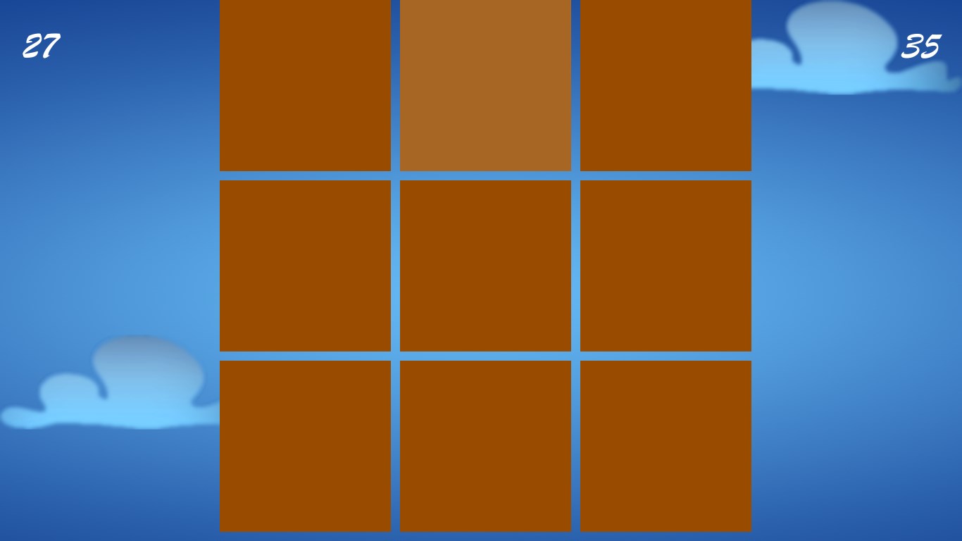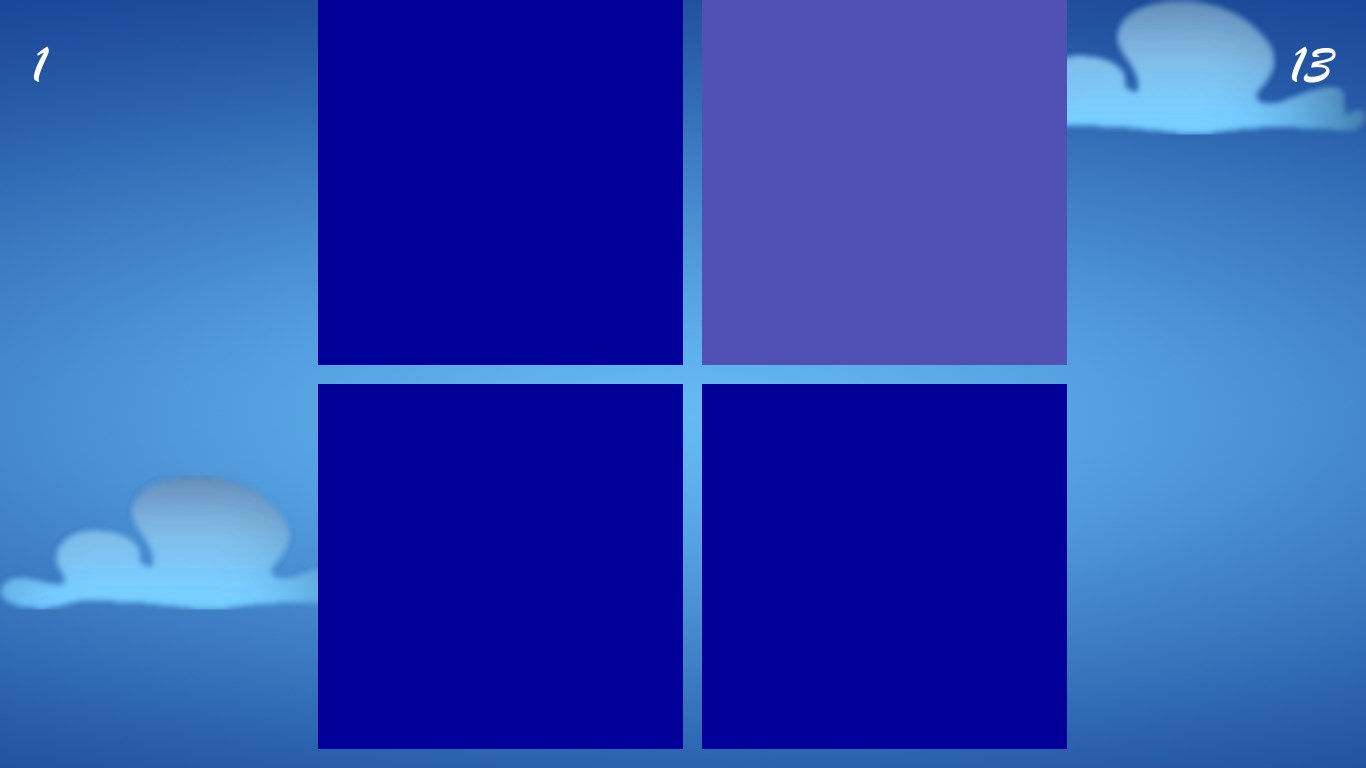 The goal : You have 15 seconds to find the square that has the lighter shade. If you have right, you win 2 additional seconds. However if you have wrong, you will lose 4 seconds. Be carreful, the difficulty increases with levels.