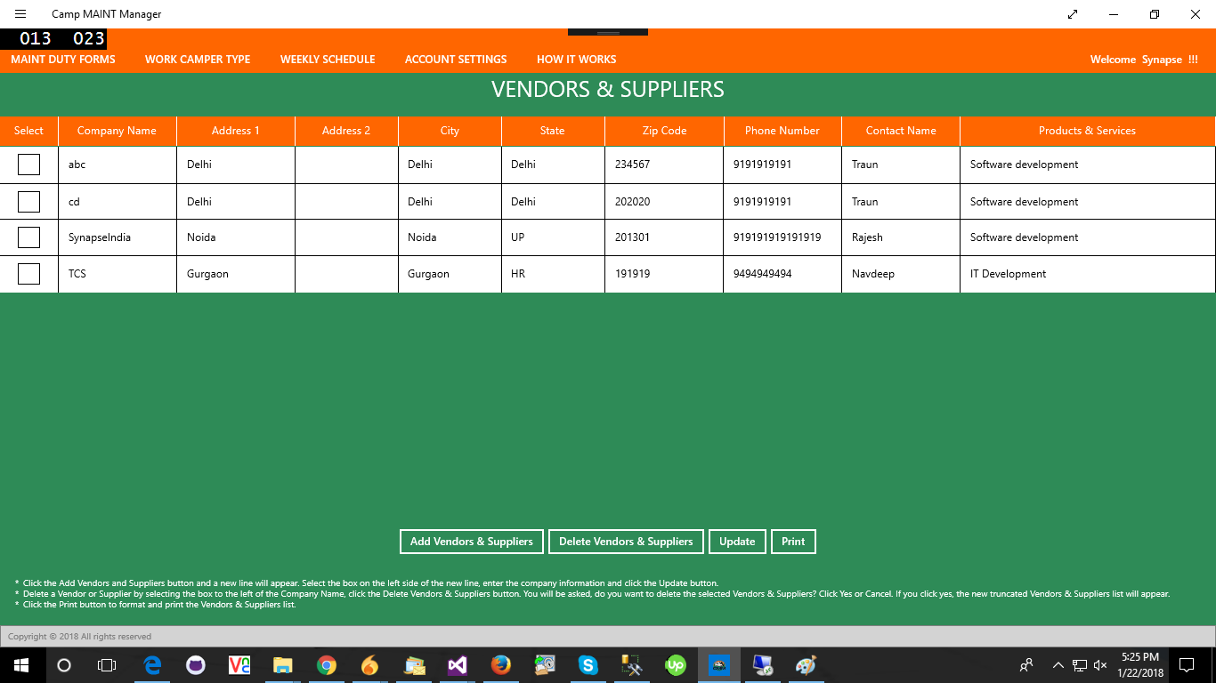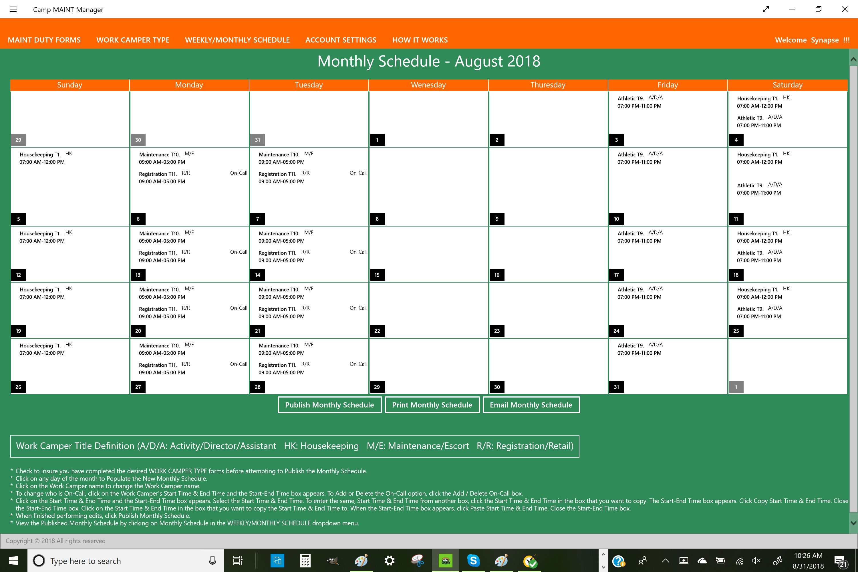 • Edit, Print and Email Weekly and Monthly Schedules to Managers and Work Campers.