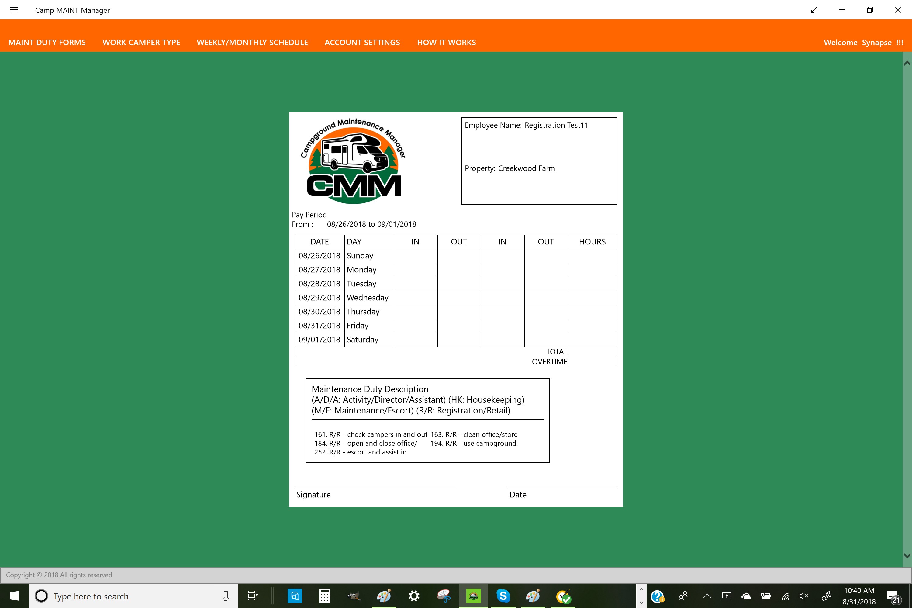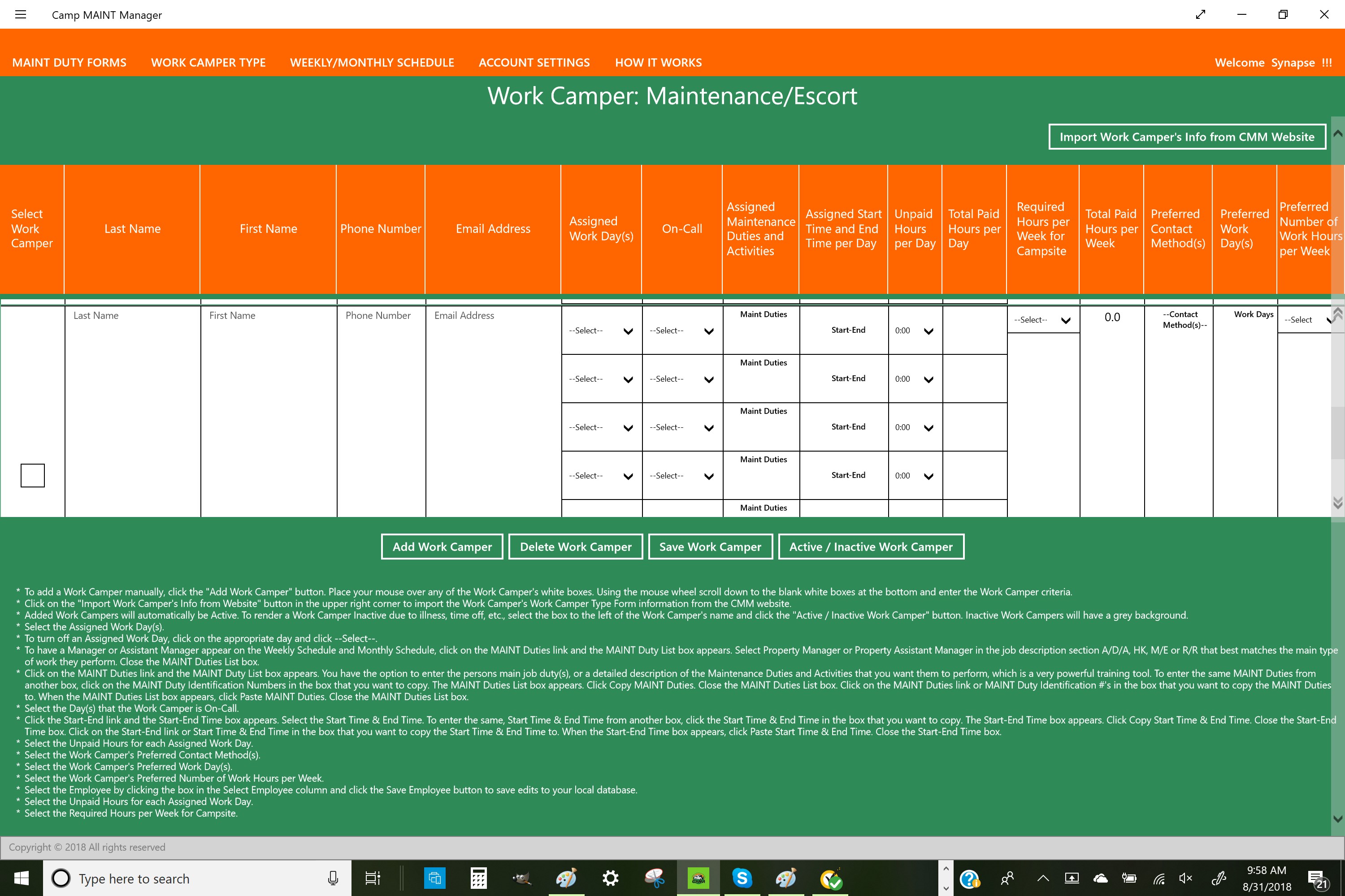Camp MAINT Manager (CMM) is an employee scheduling software and more.