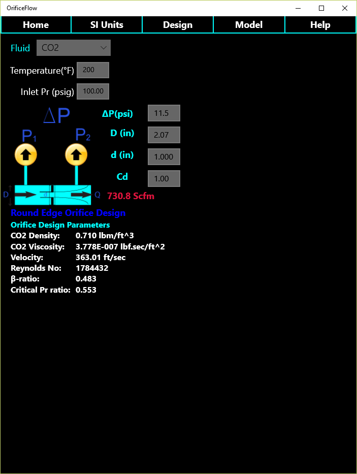 A case study on CO2 flow rate is shown in the screen shot. The result is consistent with other methods used by the industry in computation and difference is less than 0.5%. Flow models with governing equations are given separately for quick reference.