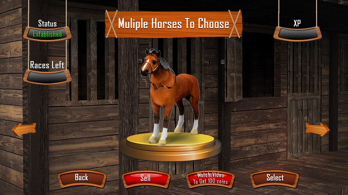 A Stable with Multiple Horses to UnlockVariety of Jockey Accessories to Unlock10 different challenging levels of gameAmazing 3D graphics with optimized game playRealistic animations of Stallion race towards finish lineCollect coins to unlock Different Horses & AccessoriesEasy and smooth controls to Enjoy Horse SimulationHorse Upgrades to Increase Speed, Stamina & Life