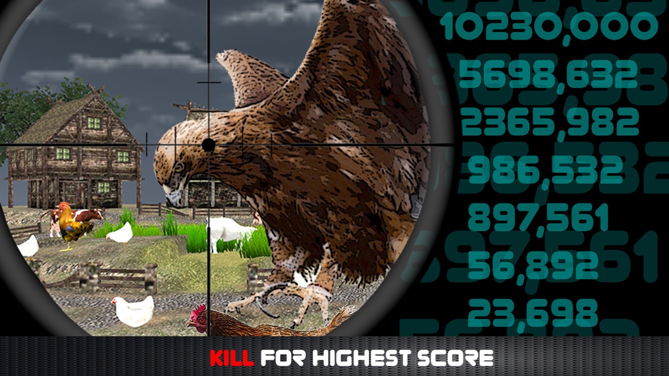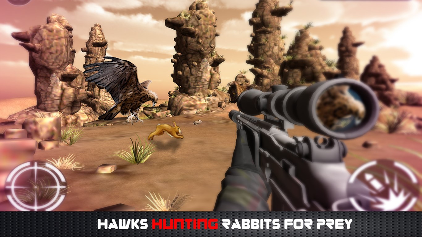 In this spectacular game we have covered these entire scenarios for serious eagle hunting or hawk hunter. Head down to coast early in the morning and enjoy eagle hunting, while they are hunting fish for their prey. You might be interested in Hawk hunting, so make your way to the country side huge farmyard, where the eagle or hawk is just about to attack the chicken or hen for their lunch or head down to desert, if you want to save the poor rabbit ( bunnies ) or the ferocious snake from the eagle attacks.