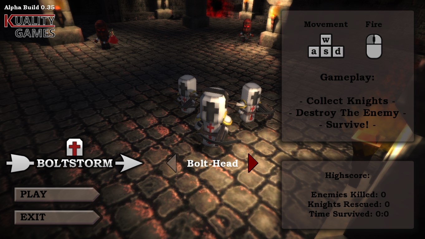 Boltstorm is a game developed during Ludum Dare 34 game jam in 72 hours. It is about a Knight that ventures into the dungeon to save his fellow knights, but instead he gets trapped and is attacked by merciless executioners!