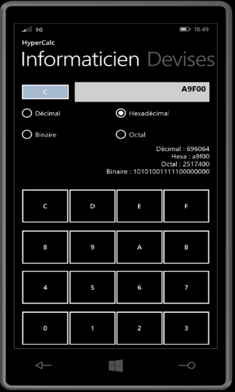 calculatriceconversion binaire / décimal / hexadécimalconversion d\'une devise dans une autretraceur de courbes mathématiques