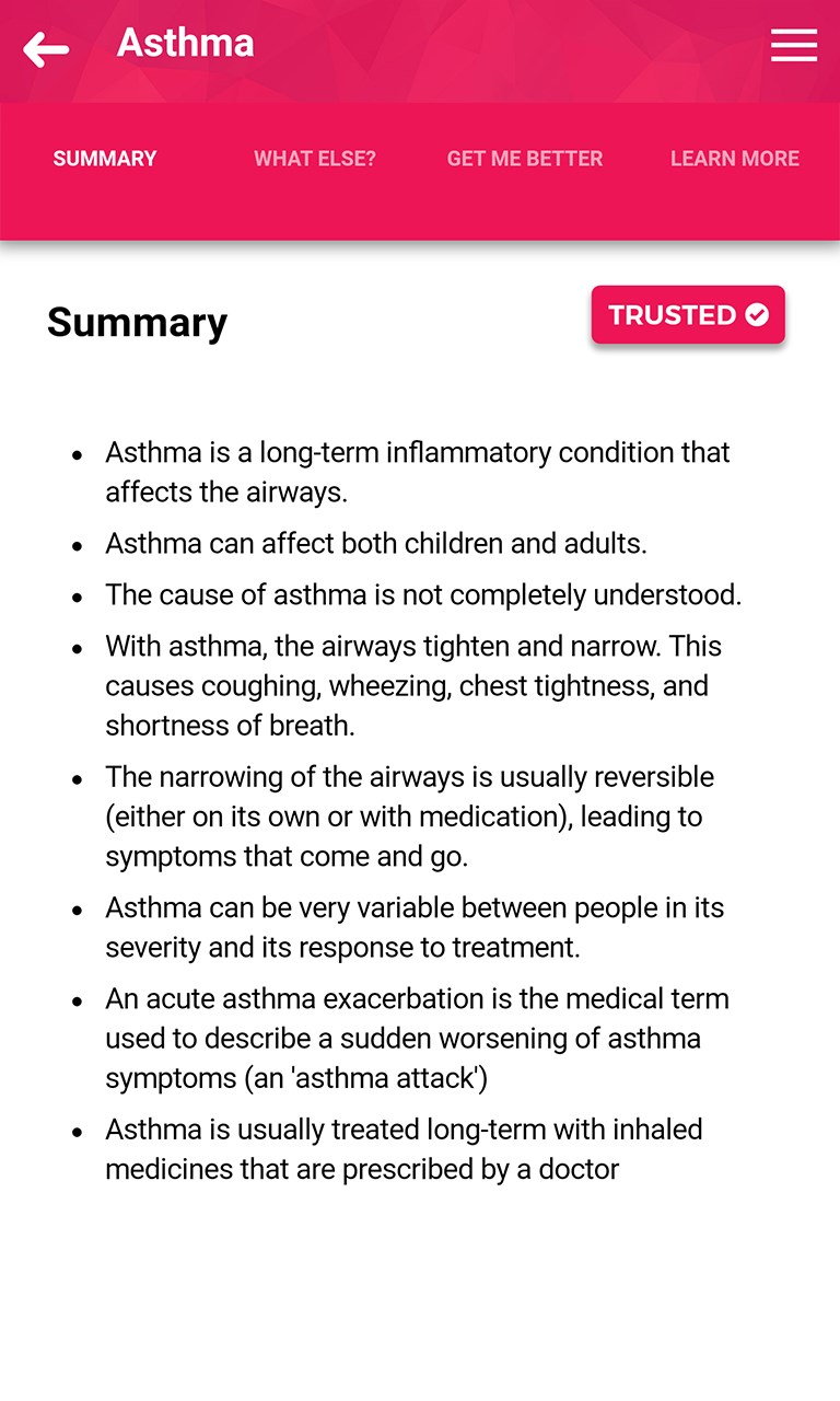 In the UK, to ensure that medical advice is high quality and consistent, guidance is provided to all doctors on how to diagnose and treat the most common illnesses (over 350 different conditions). This guidance, commissioned by the UK’s National Institute of Health and Care Excellence ("NICE"), is written by us and is called Clinical Knowledge Summaries (“CKS”). Prodigy is the same guidance, but instead of being written for doctors, it is written for patients. No other medical apps in the world are developed using processes accredited by NICE.