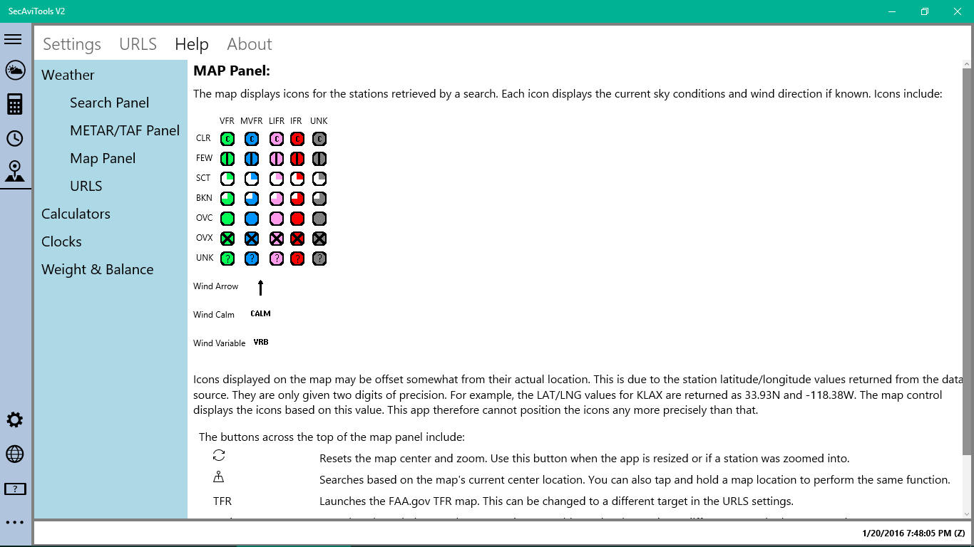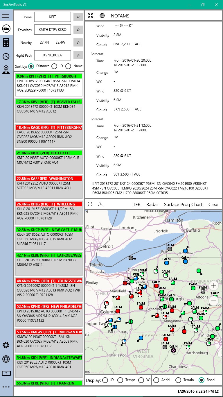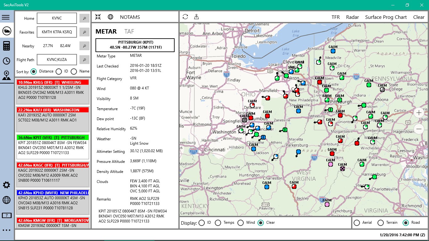 SecAviTools version 2 for Windows 10. Aviation centric weather app for pilots. METAR/TAF Search Engine, Weight & Balance Calculator.