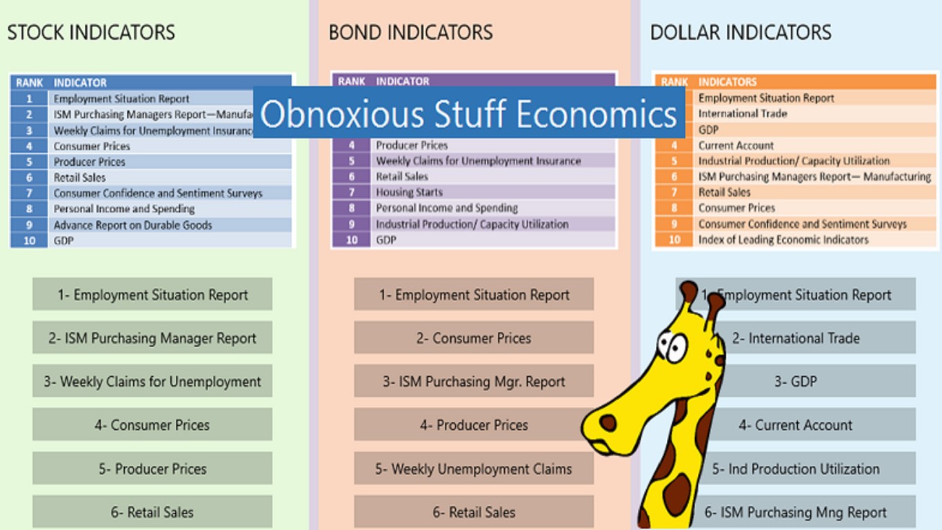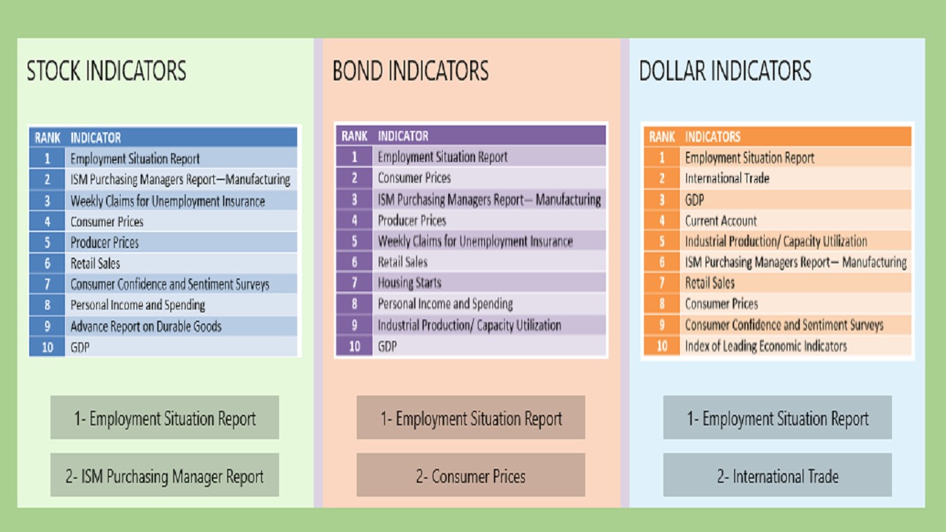 The Author rated the sensitivity of an Indicator to each; stocks, bonds and dollar. The highest sensitivity turns out to be employment in all three categories. Employment?