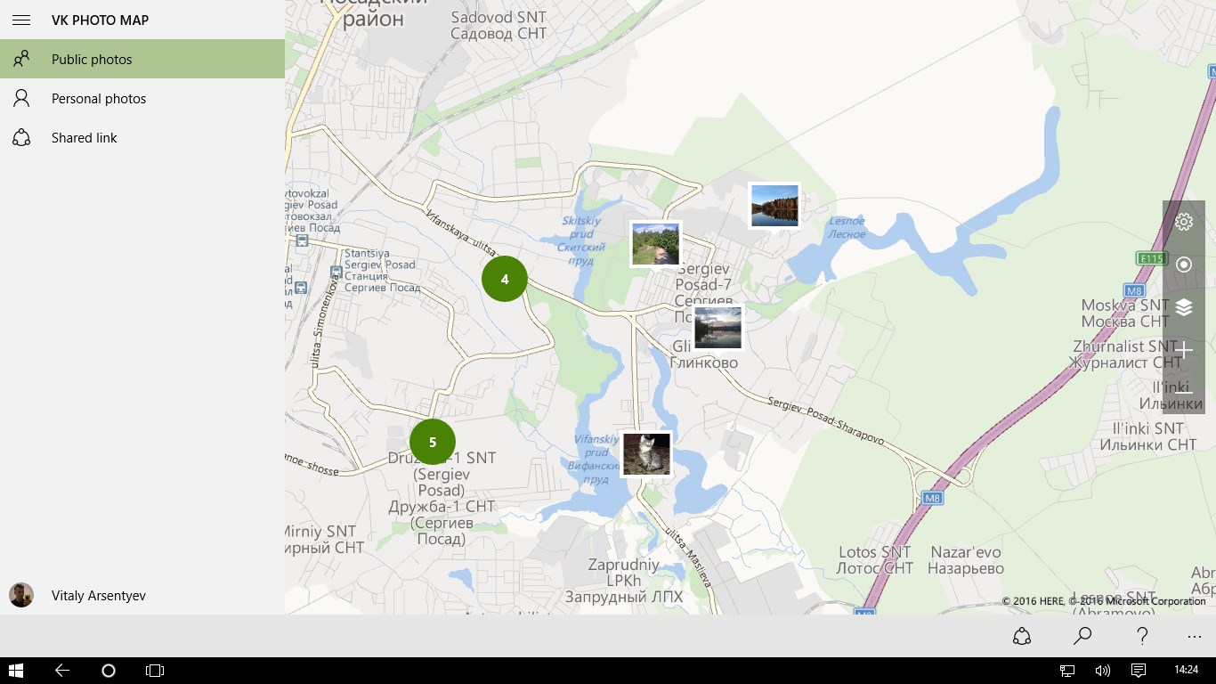 Allows you to view public photos of users of social network Vkontakte on the world map.