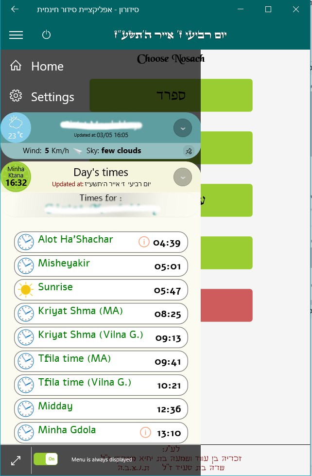 Automatic prayer contentMirror for Tefilin aligningDay\'s times for your GPS locationPrayer auto scrollingNight modeCustom Font family Hebrew date inside the applicationMulti language (Hebrew&English)Personalize your Siddur design (buttons)See the next Shaa Zmanit quickly