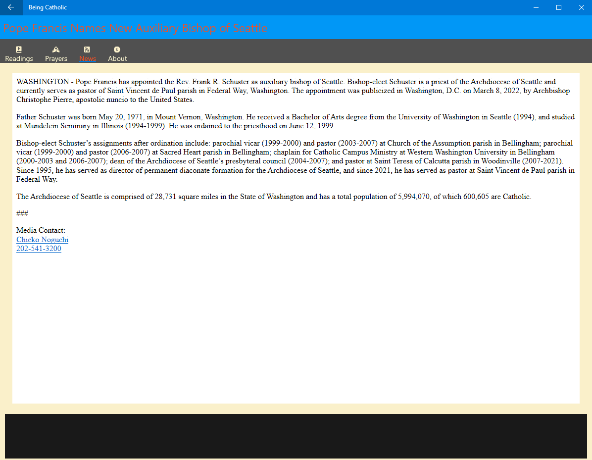 Stay tuned for future developments to Being Catholic. We will also be adding new features to help make Being Catholic even better.