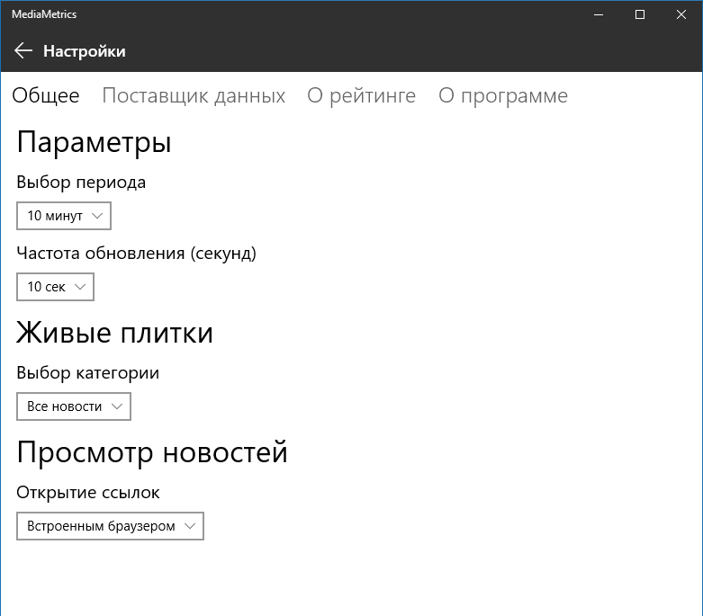 Mediametrics – сервис новостей, предлагающий ленту из самых популярных и обсуждаемых в социальных сетях темах, представленных по рейтингу с возможностью фильтрации по временным промежуткам и источникам.