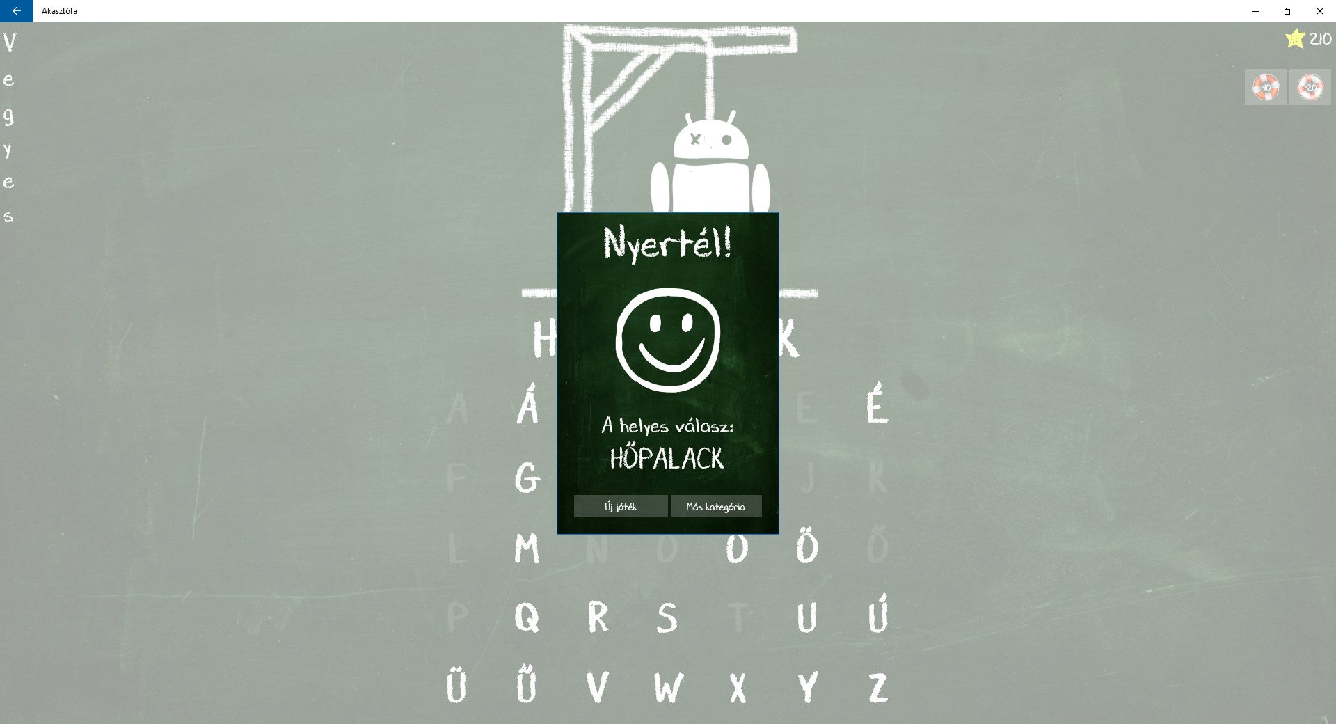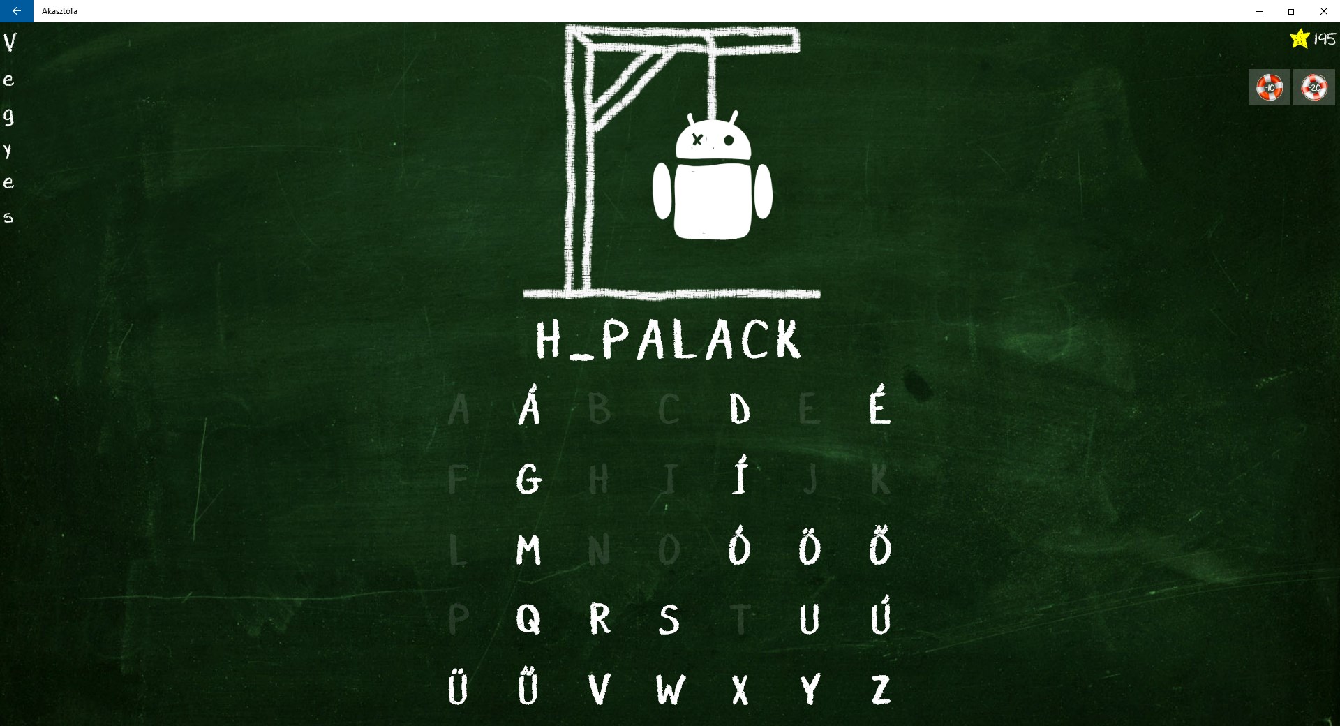 A játék során a kategóriákra bontott szavakat kell kitalálni. A kitalálandó szót a szóban szereplő betűk számával megegyező számú és elrendezésű vízszintes vonal reprezentálja. A játékos javasol egy betűt, mely ha szerepel a kitalálandó szóban, a betű helyének megfelelő vonalakra ráírásra kerül. Amennyiben a betű nem szerepel a kitalálandó szóban, úgy egy egyszerűsített akasztófa egy része kerül lerajzolásra. Minden kitalált betű pontot ér. Ha a játékos elég pontot gyűjt és elakadt, kérhet segítséget némi pont fejében. A játékban több mint 70 000 szó érhető el az alábbi kategóriákra bontva: