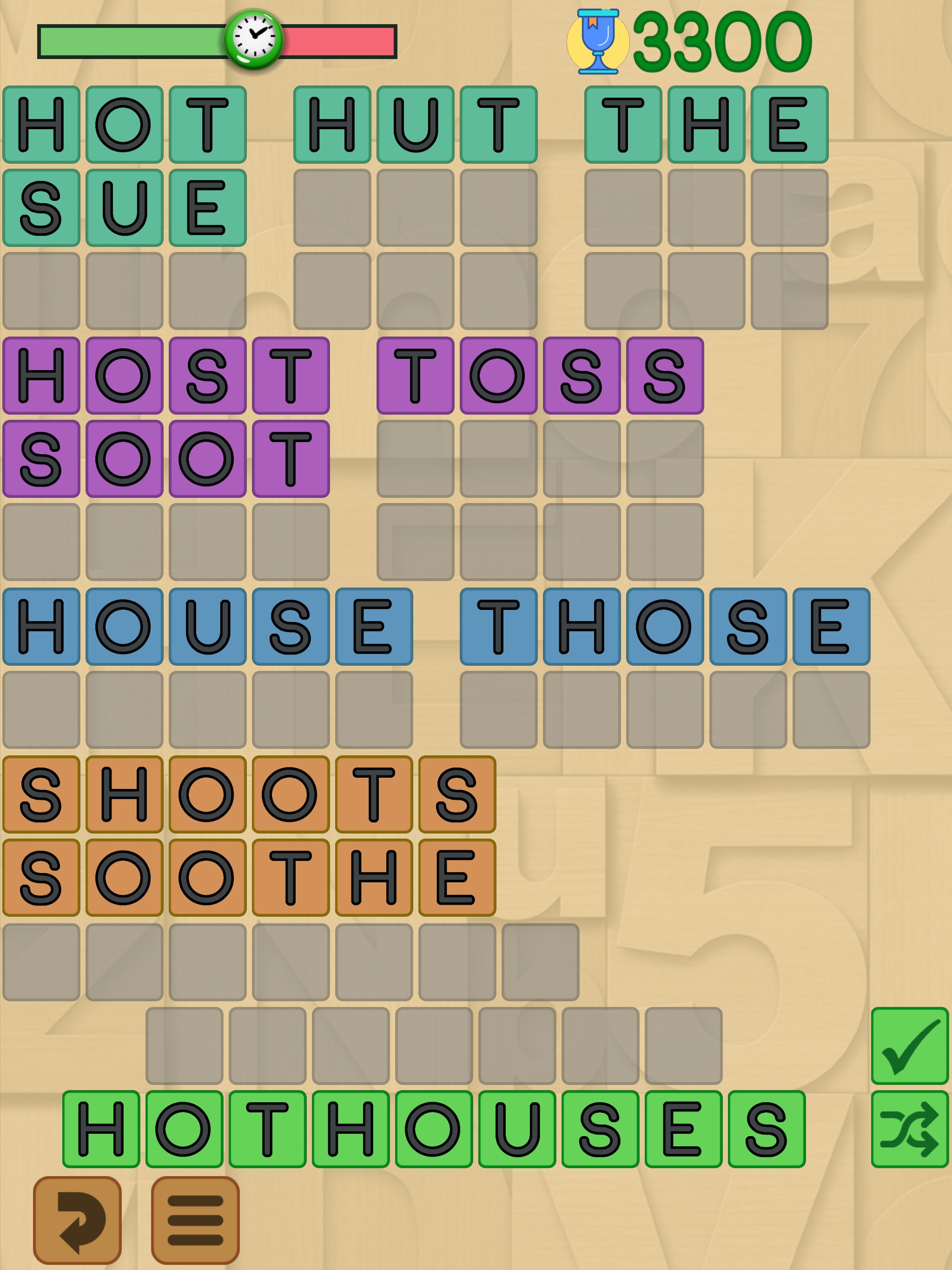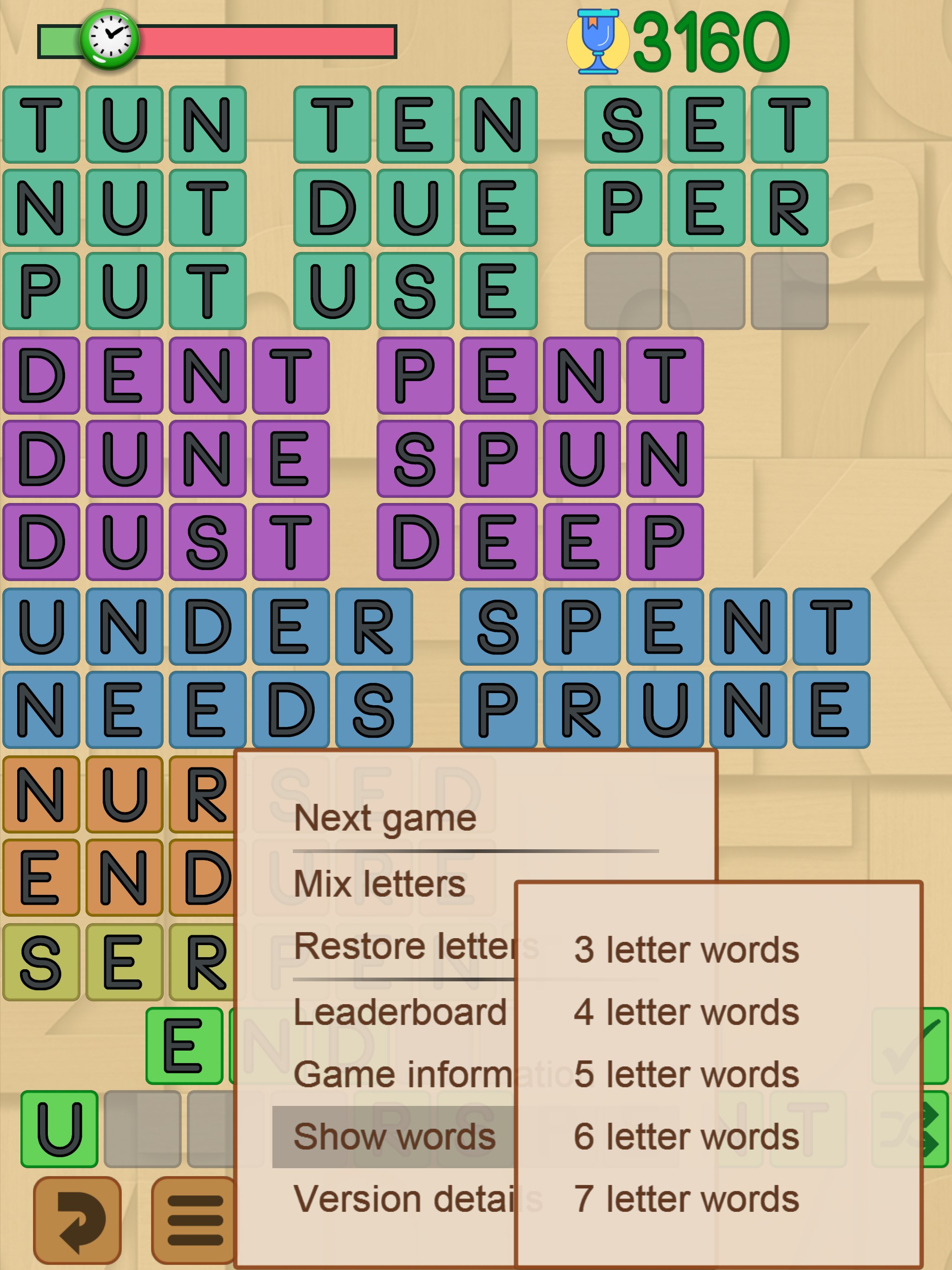 Massive 230,000+ word dictionaryEasy, medium and hard levels of play.Play solo in against others in tournaments.Mix the master word letters to help spot different wordsSolution word lists.