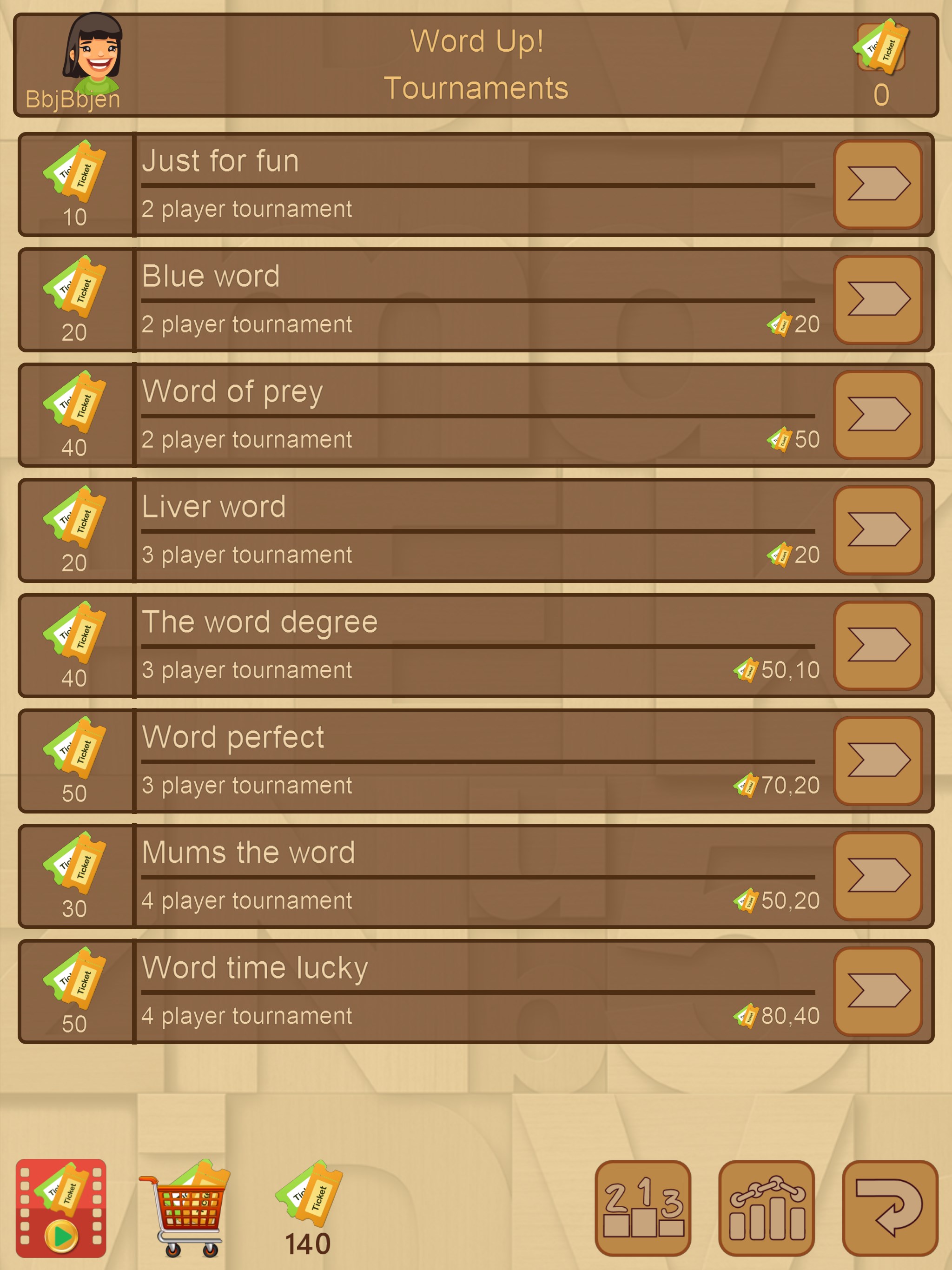 Play solo or take on others from around the world. In tournament mode each player is given the same word to construct as many high scoring words as possible. The player achieving the highest score wins the tournament.
