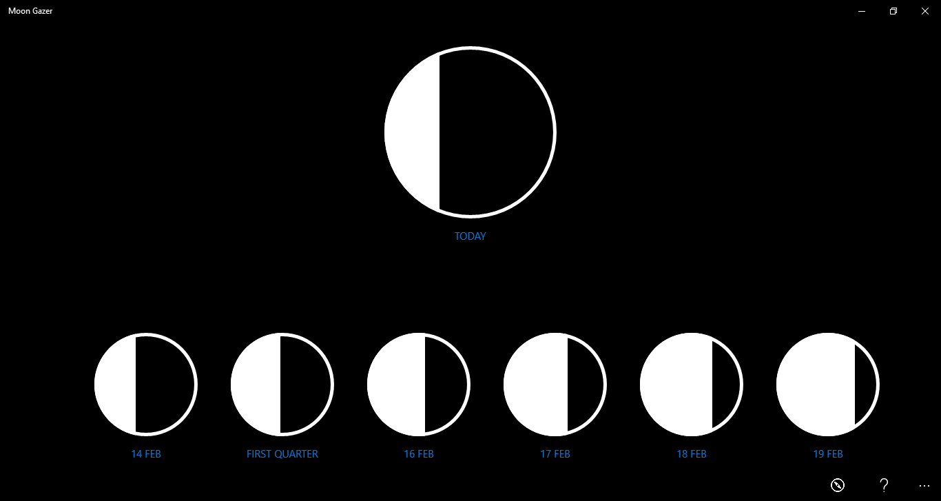 Plan the perfect lunar backdrop for a night of astronomy or a romantic dinner. Moon Gazer uses your location to provide a 7-day forecast of the moon’s phase. With a minimalist design, that incorporates your chosen Windows theme colour, easily plan the perfect moonlight night.