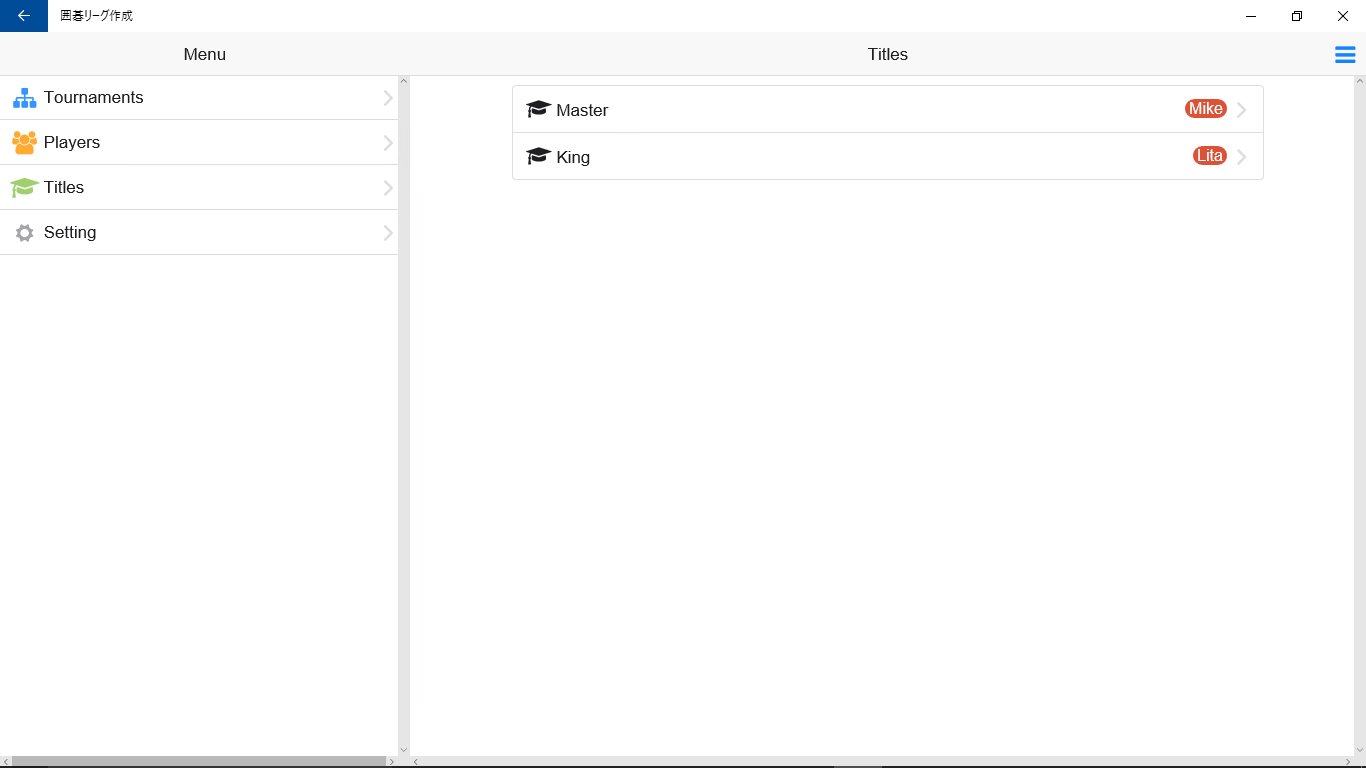 - Create titles and champions of tournaments win titles.