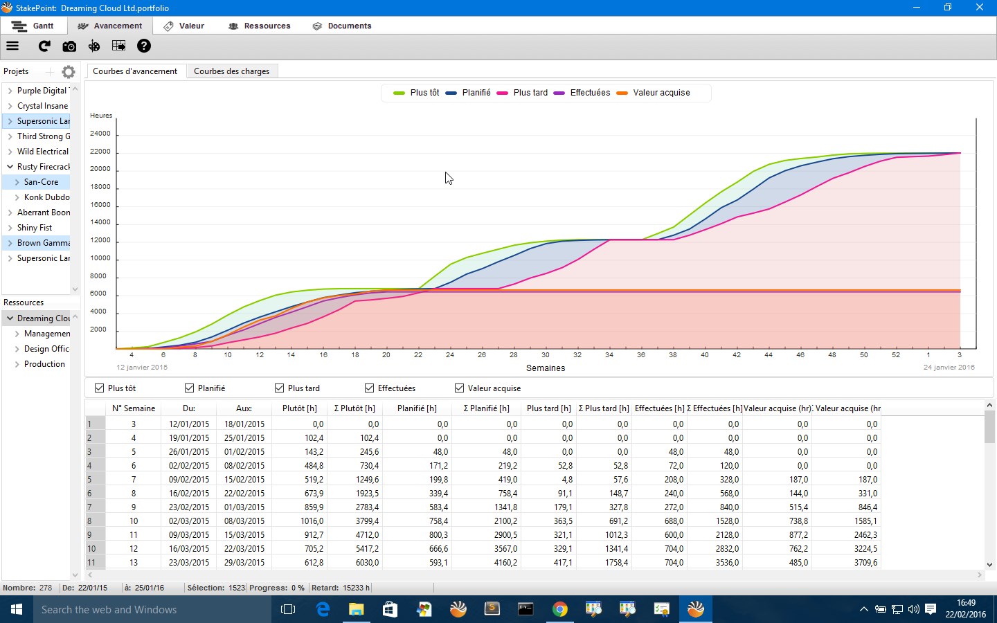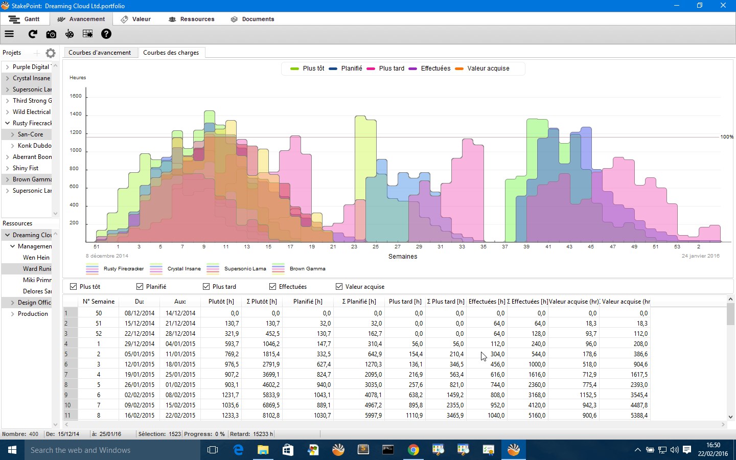 StakePoint shows you how resources are in use across projects with extensive S-curve workload analysis across multiples selections.