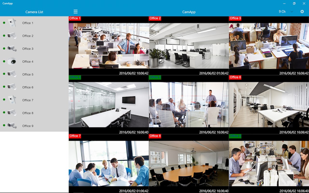 2. Multiple Live Views with display options of 1, 4, 9, and 16 screen divisions