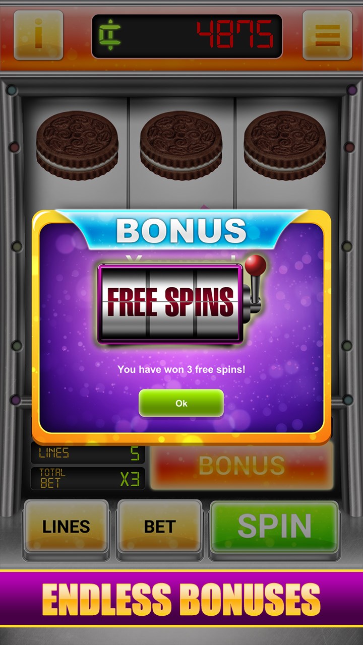 Endless bonusesFree coinsVarious machine themesHigh betsStunning visuals