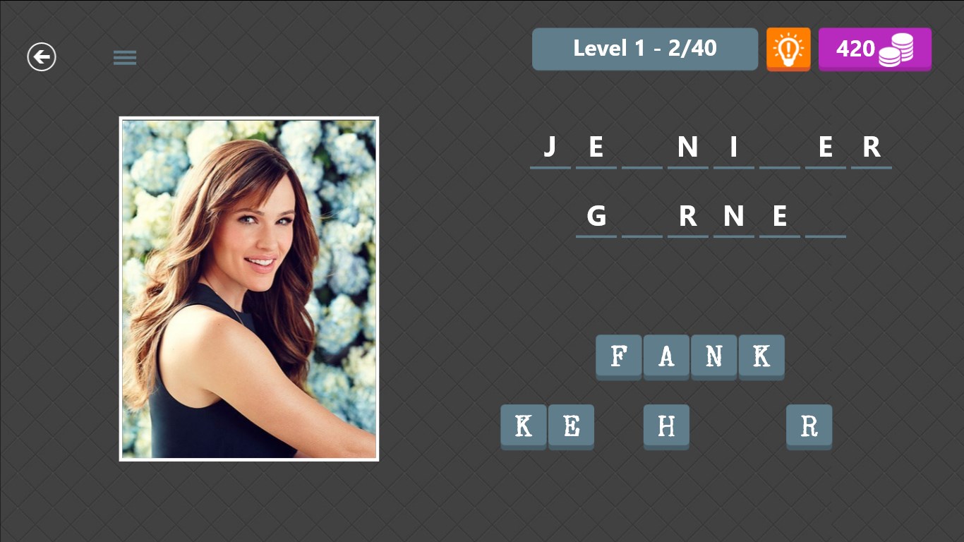 200 Celebrities to guessSupports both Windows and Windows PhoneFree, no registration, no login, just playPleasing in-game animations