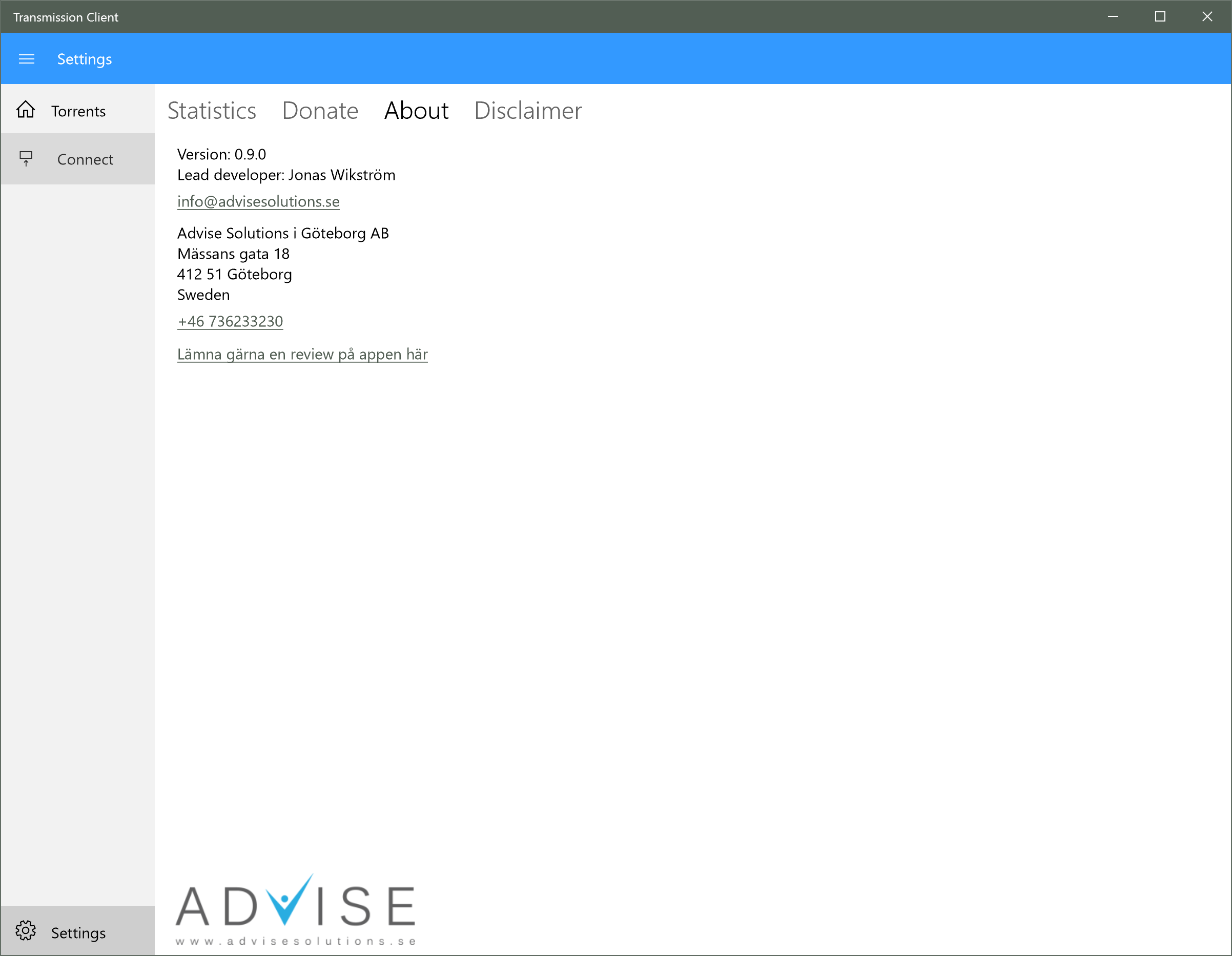 - Developed by Advise Solutions i Goteborg AB
