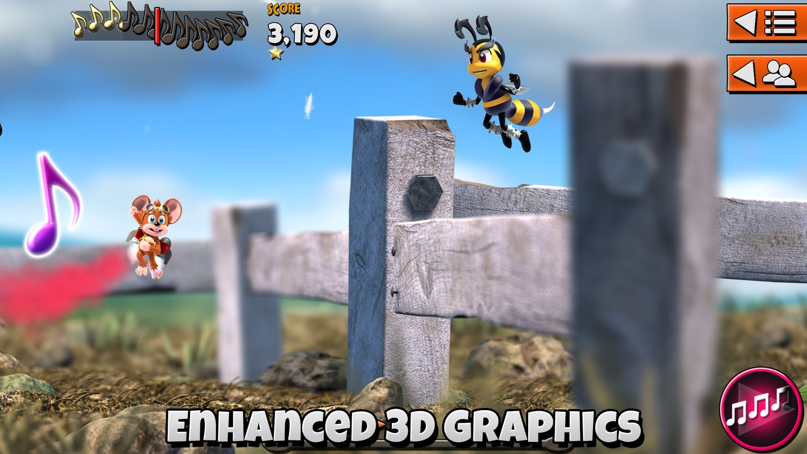 Mice, music, snacks, and a massive disco ball!Enhanced 3D graphics including depth of field and parallax motion.Hundreds of stunning countryside levels with dramatic lighting and weather.Beautifully intuitive controls.Fight back with a range of power-ups to deploy.