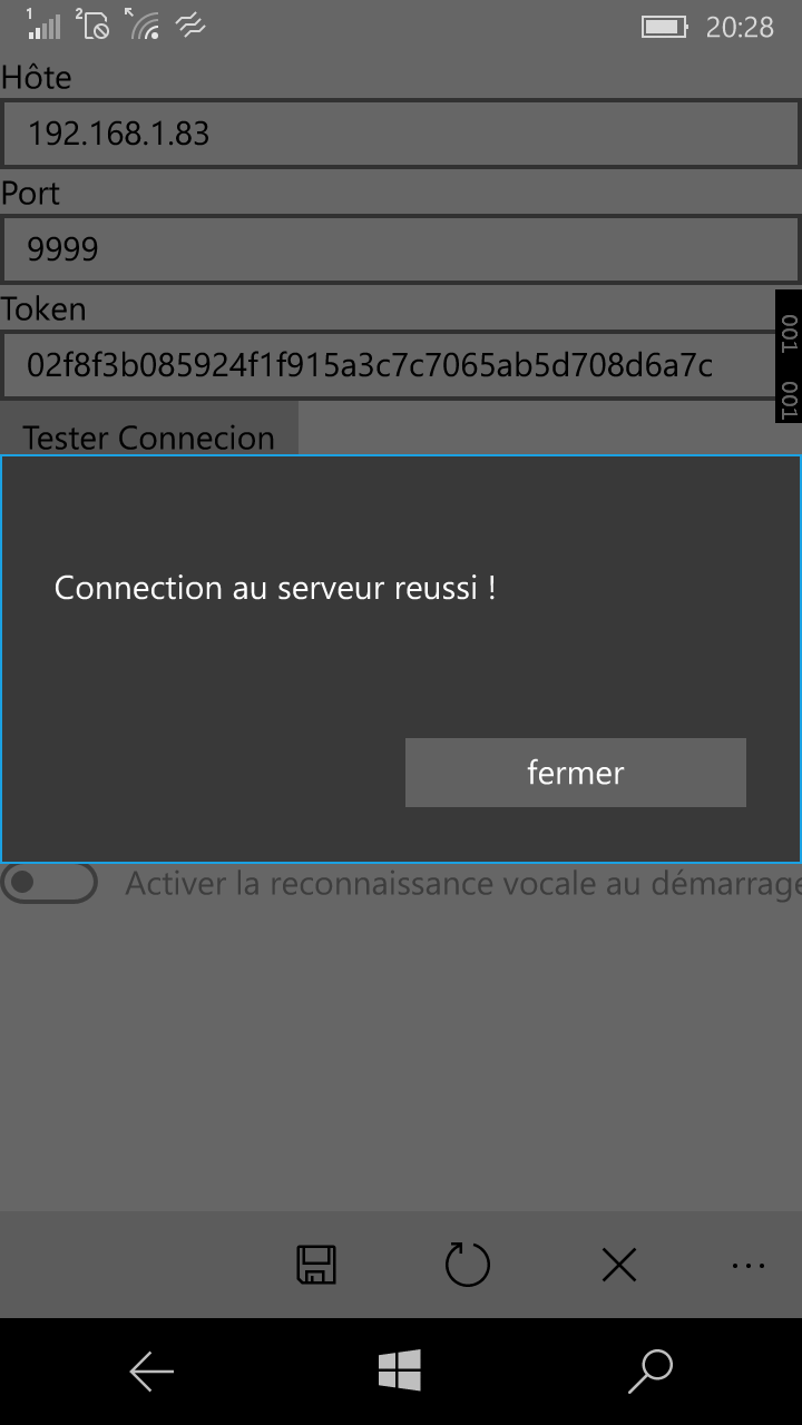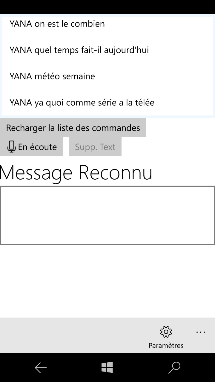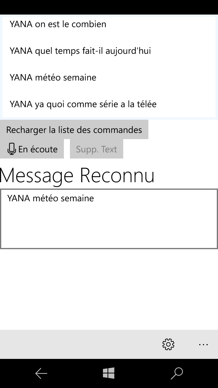 - Envoyer des commandes à Yana-Serveur telle que : "YANA quelle heure est-il ?" soit en sélectionnant la commande dans une liste soit en lançant la reconnaissance vocale.