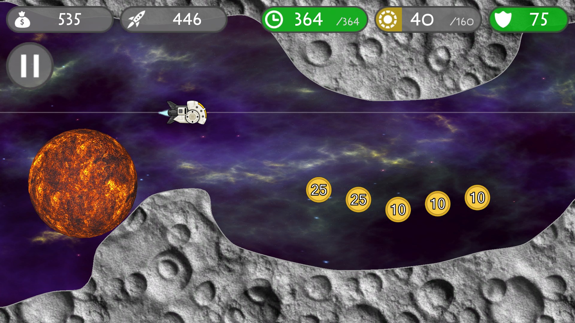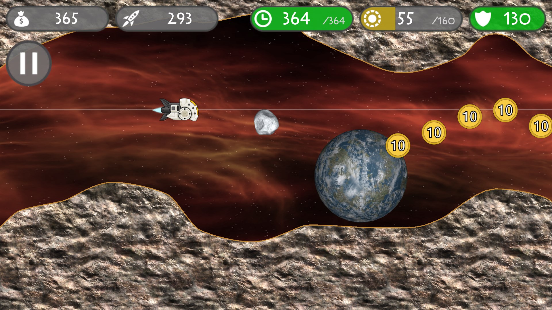 Along the way you will meet various obstacles and challenges, but you will also encounter a lot of power-ups! They will help you manage your speed, give you the much needed fuel for your travels, and strengthen your shield for bad situations.