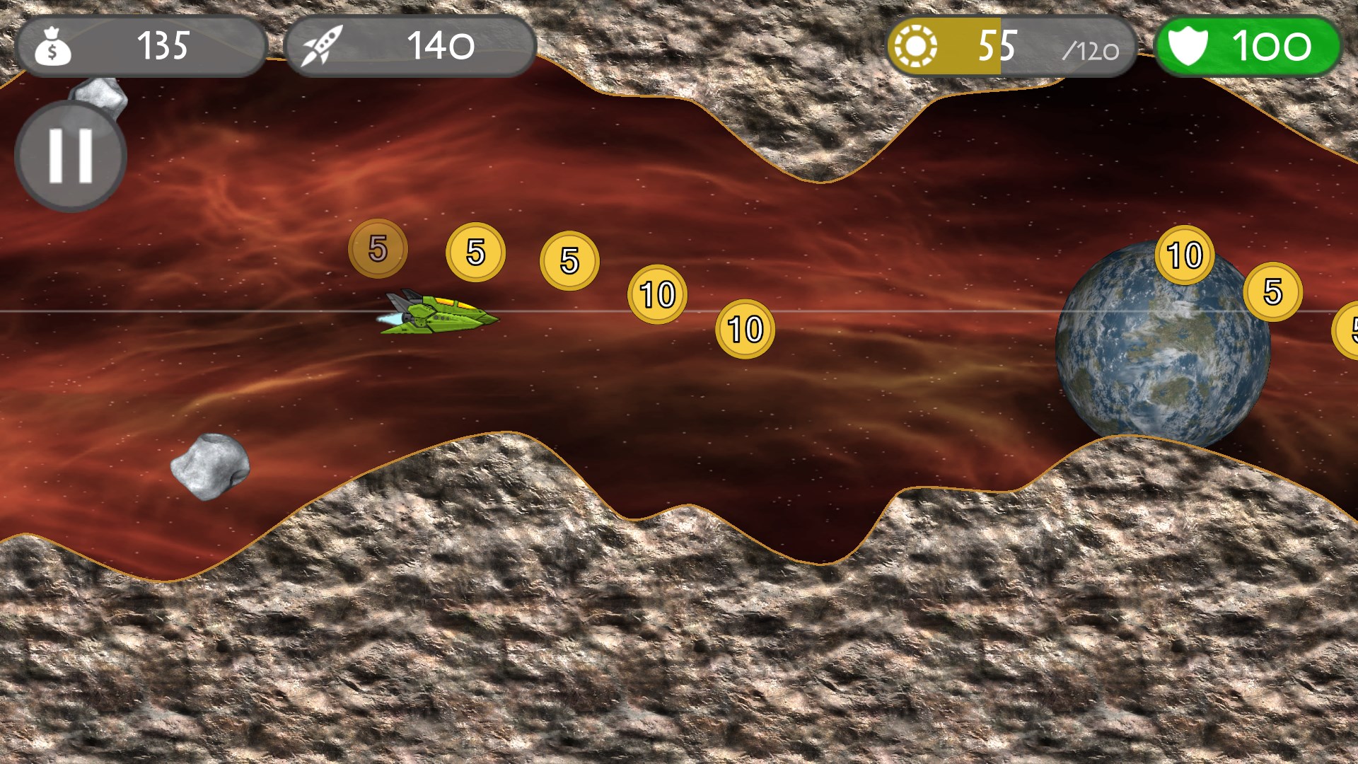 Your goal is to guide your space vehicle through various obstacles and survive as long as you can. The further you go, the higher your speed, the more difficult the challenges!