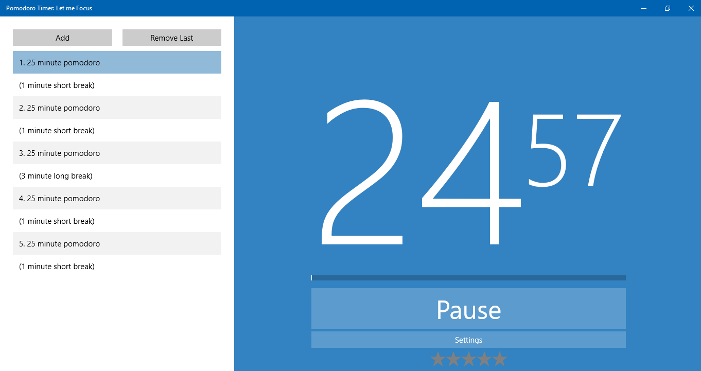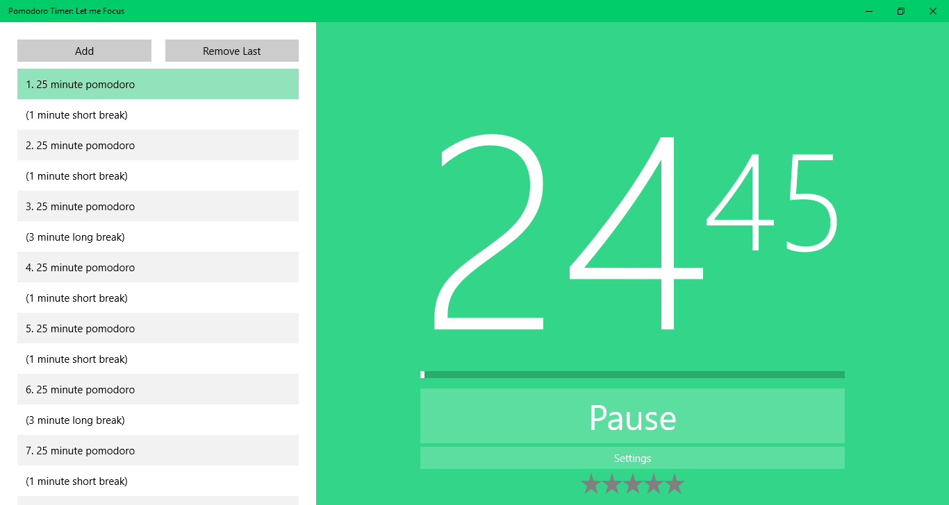 Work Timer helps you step up your productivity and focus using the frequent breaks technique, one of the most effective time management methods. Not only will you get a fully configurable timer that lets you customize every aspect of the technique, but you will also enjoy a clear and beautiful user interface.