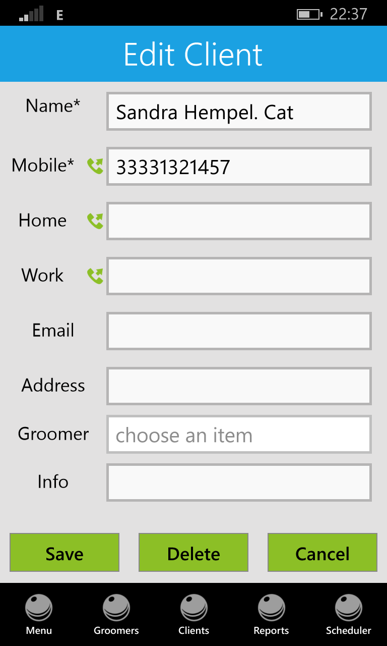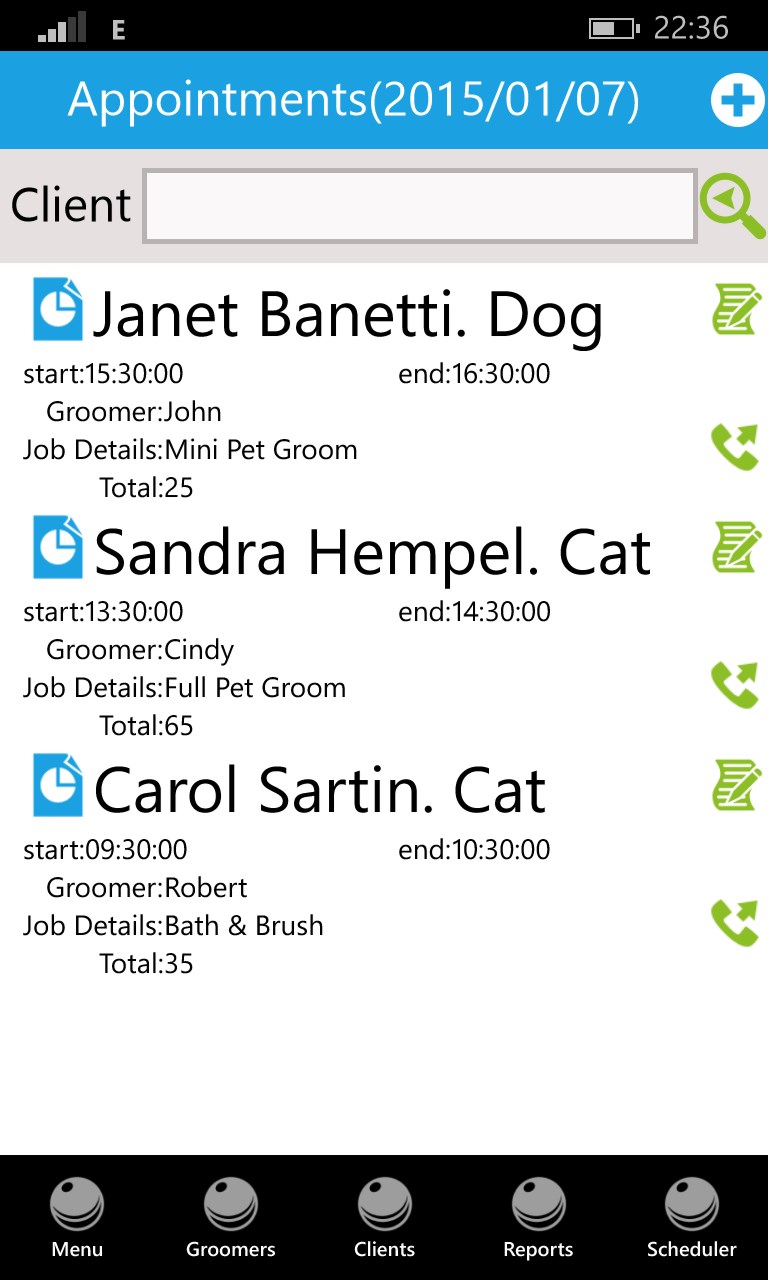 ★ Pet grooming institutions are among some of the most organized and managed facilities today as dealing with pets is a totally different process compared to dealing with humans. These facilities require intensely the need to organize and schedule all activities relating to a pet grooming facility. ★ The pet grooming software offers an extensive database that store in all details relating to scheduling of grooming processes, data of pets and clients, data relating to groomers and all financial earning information as well. This software is so easy to use and manage that within a simple glance the organizer can perform a search to find the animal that is to be groomed along with the multiple profiles of groomers that are capable of doing the job. ★ The pet grooming software’s menu features four programs including Groomers, Clients, Reports and Scheduler. In the groomers section information about all groomers can be stored and easily retrieved whenever required. It can highlight the availability of groomers and save appointments and dates according to designated jobs. Similarly in the clients section all information relating to the client and pets can be stored including name, address, and contact details. ★ You can easily list appointments and view client lists whenever you want and also make a phone call directly from the program to any client required. ★ The pet grooming software, designed specifically to run in compatibility with Android also allows the option of capturing and adding in photos of both the groomers and the clients in the software. This is specifically beneficial for customer services, as you are now better aware of every client personally via this program. ★ The scheduler and reports section on the pet grooming software shows a calendar that depicts daily sales under each date using which you can calculate total sales along with details of daily sales as well. This calendar also makes it easy to schedule appointments and go through daily routine of commitments without any hassle. Also the reports section offers individual reports on the collective and daily earnings of every groomer saved in the database of the software and reports the collective earning per day as well, including all groomers earnings of the day. ★ This easy to use and manage pet grooming software is the ultimate solution to all managing problems faced by the services industry today as pet grooming business management is no more a hassle thanks to this revolutionary pet grooming software.
