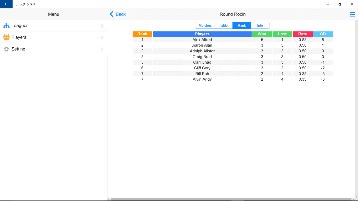 Make "Round Robin" and "Knockout" small tournaments easily.