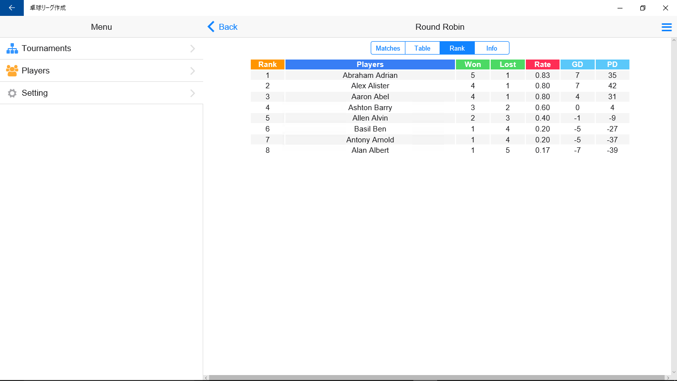 Make "Round Robin" and "Knockout" small tournaments easily.
