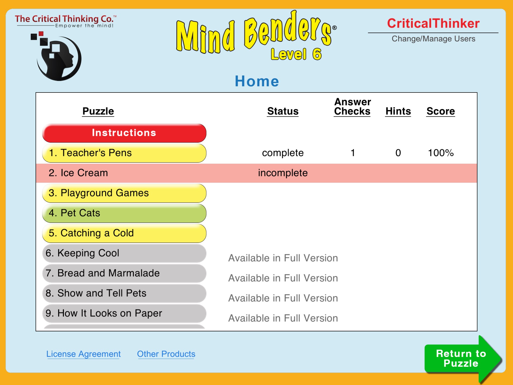 • Step 4: Use Mind Benders® Level 6 (Free)