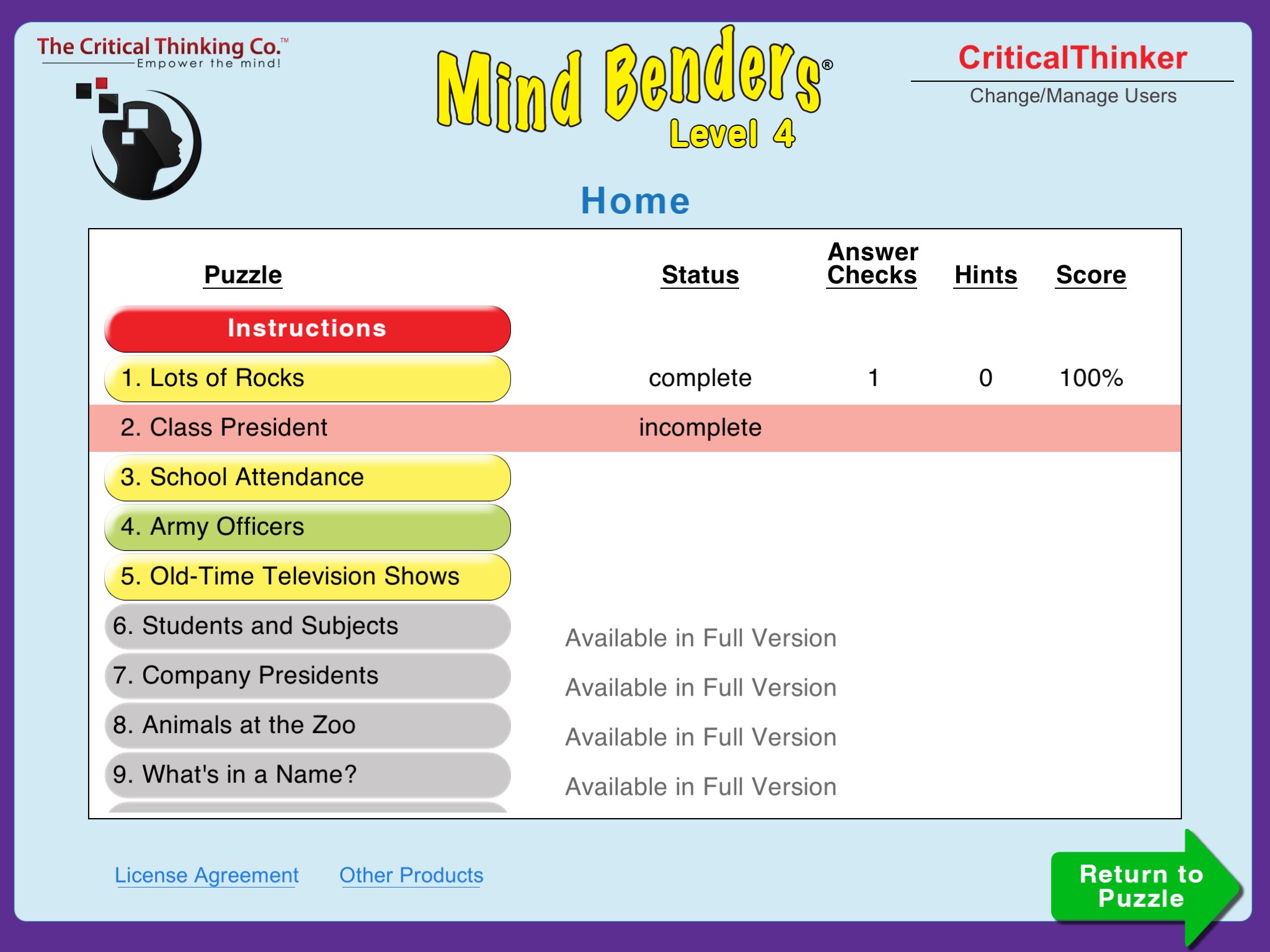 Step 4: Use Mind Benders® Level 4 (Free)