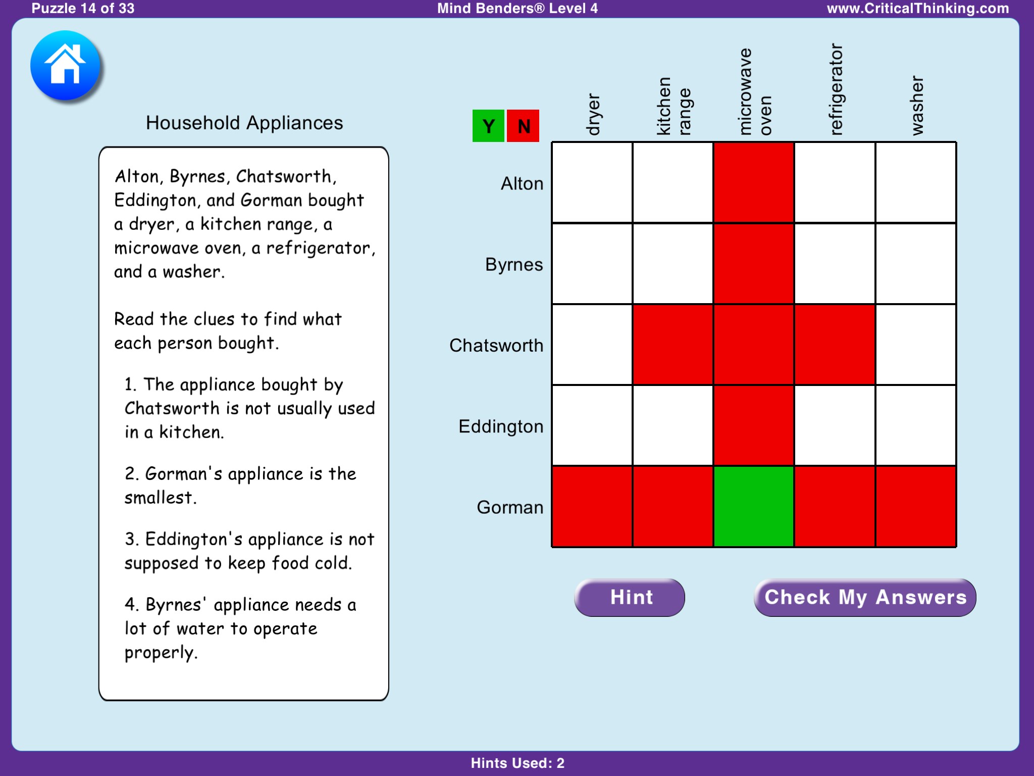 Students carefully analyze each Mind Benders® story and its clues, identifying logical associations between people, places, and things. The key is to start with the most obvious associations, then deduce less obvious associations until everything finally fits together.