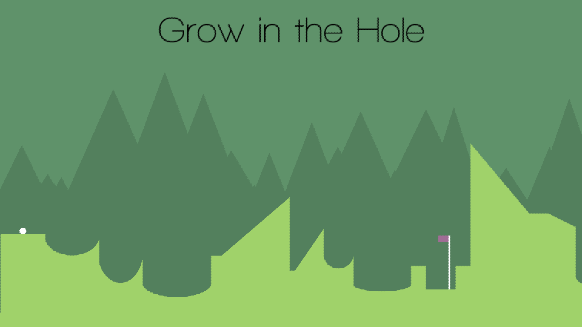 Grow in the Hole is a 2D side view golf game based around an often-growing and shrinking golf ball and procedurally generated courses. How well can you handle 18 holes when the ball is getting bigger after every failed shot?