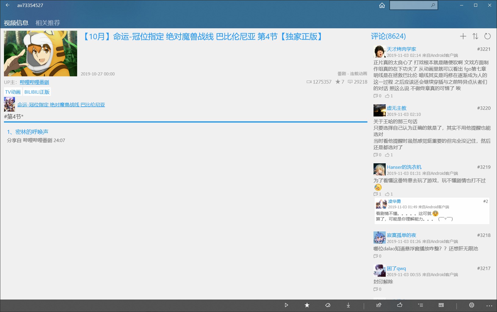 本应用是哔哩哔哩弹幕网(www.bilibili.com)的官方Windows 10客户端。哔哩哔哩弹幕网是国内知名的弹幕视频分享网站,常被动漫迷们昵称为"bilibili"、"B站"。