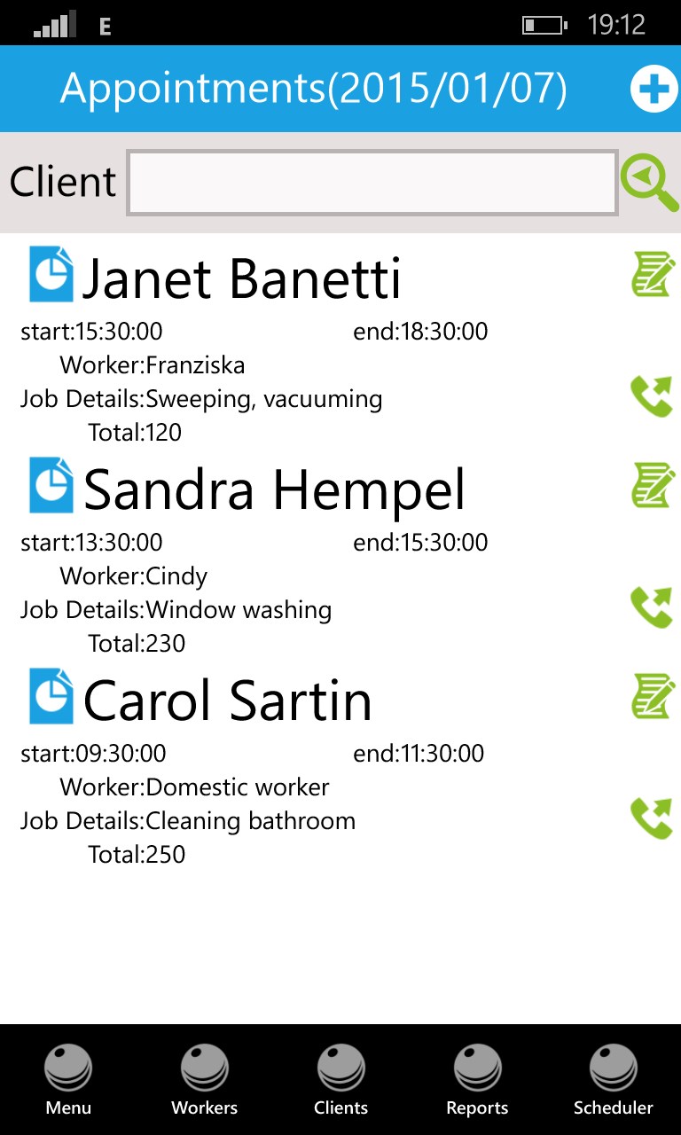 ★ Specialized apps and powerful software today has made doing business a lot easier than before. Recording transactions and viewing them becomes much easier for cleaning firms through use of the new cleaning business software which allows recording and viewing of all cleaning jobs including carpet care, floor care, window washing, self employment, custodial training and all other related activities very easy and manageable. ★ The scheduler of the software allows recording of all due jobs with date and timing which not makes it easy to remember all jobs but also in scheduling new work appointments as availability can easily be checked through the cleaning business software. Setting appointment and never forgetting them is the base on which a cleaning business excels and the cleaning business software helps considerably in enhancing your business. ★ Management is the key to any businesses’ functioning and although even the biggest of companies have to go through a lot in order to manage new and previous job appointments, time scheduling, etc. Cleaning business software alone has the potential of serving the job otherwise performed by multiple individuals and still the provision of error remains. ★ Making cleaning business functions error free and easily manageable, the cleaning business software facilitates the cleaning industry as its services thrive on timing and commitments. Not only does this software makes managing business affairs easy but it also individually stores in every customers data, so that you can view what job was performed for the customer and when, the contact details and address can also be stored and any repeated job requirements can also be easily managed without missing out any appointment and detail. Not only customer details but the amount you earned for the job is also recorded thus facilitating calculation of financial earnings as well. The scheduler calendar also separately indicates daily earnings listed below each date and you can calculate your separate daily income too. ★ Besides clients, for businesses that have multiple employees working for them, the software also records the appointments and earnings of every employee separately, allowing managing of employees, their jobs, timings and occupancy as well. ★ The Cleaning Business Software, designed specifically to run in compatibility with Android also allows the option of capturing and adding in photos of both the workers and the clients in the software. This is specifically beneficial for customer services, as you are now better aware of every client personally via this program. ★ Besides offering service enhancing features, the software is exceptionally preferred for its speedy and simple program function and a simple menu making it easy for everyone to use.