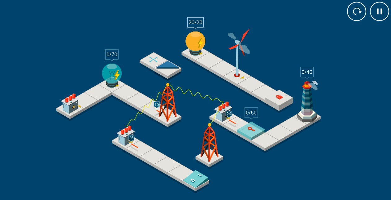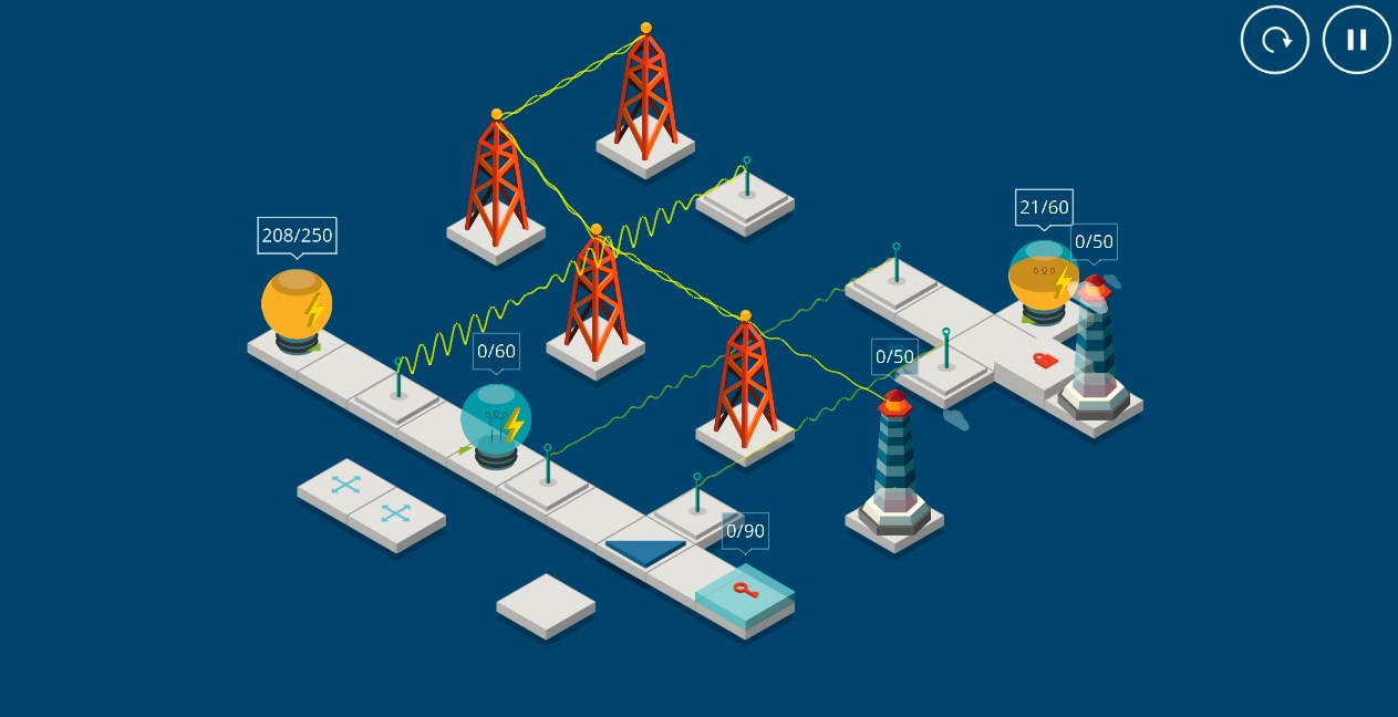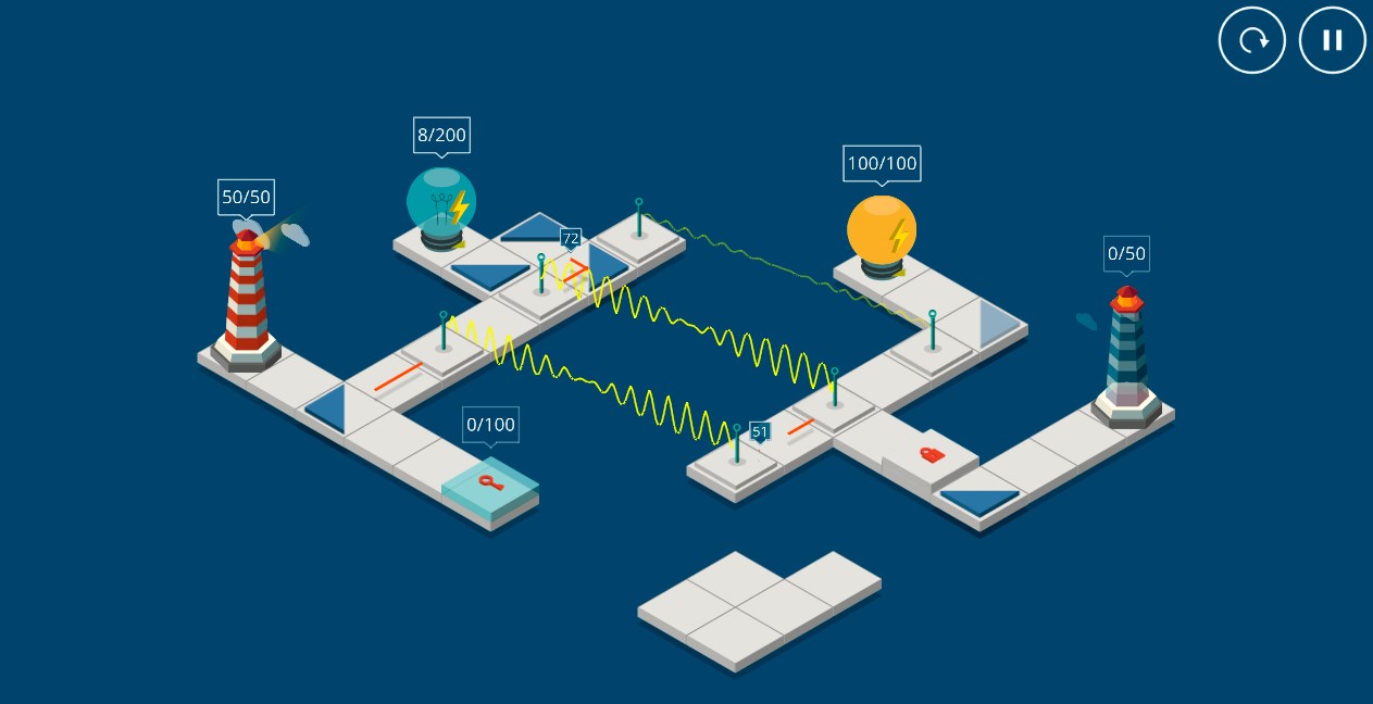 There is forgotten fireless lighthouse is the sea. Using mirrors, portals and other tools, deliver energy and set light to the lighthouse again!