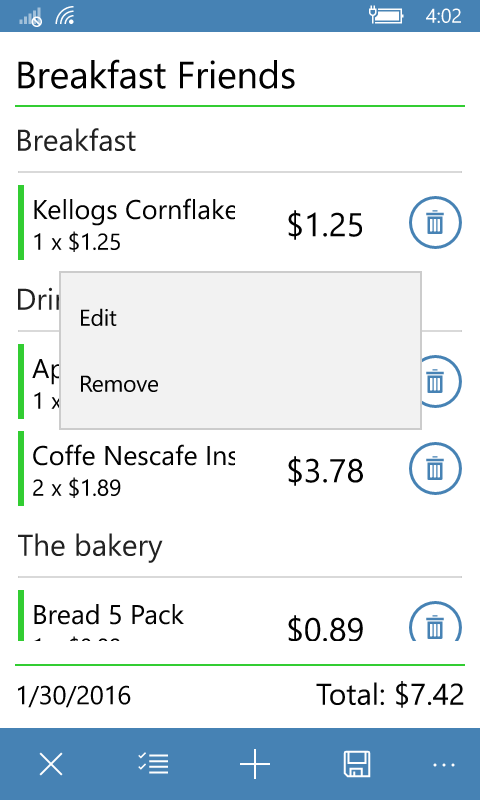 Creating and editing shopping listsSending shopping lists for messaging and e-mailControl spending alerts