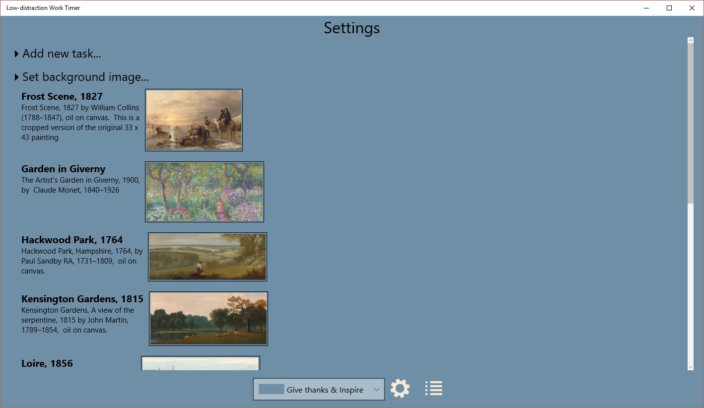 The work timer features slowly-moving inspirational images; you can always tell how much longer your focus time will last.