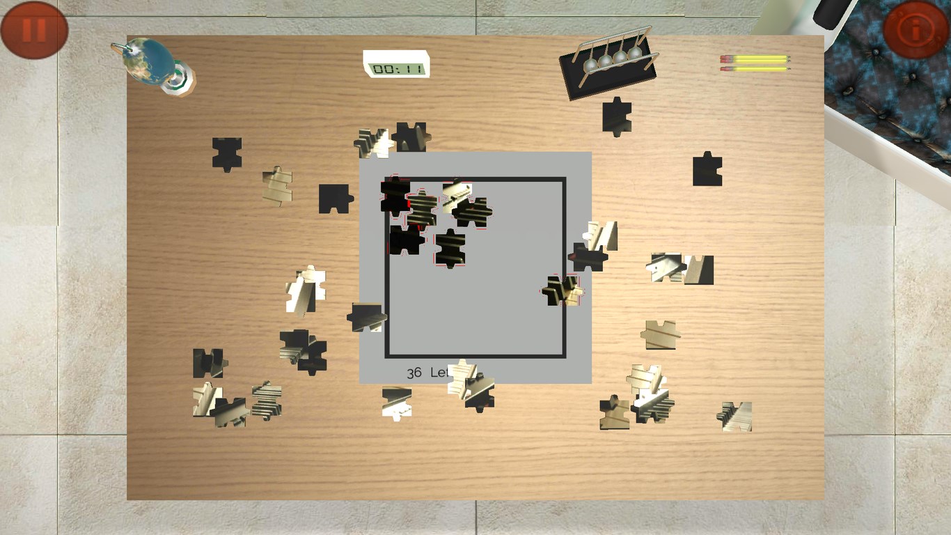 Experience the real jigsaw game in 3D graphics. Select from beautiful images to mount games up to 64 pieces and challenge your friends to see who can solve the puzzles faster.